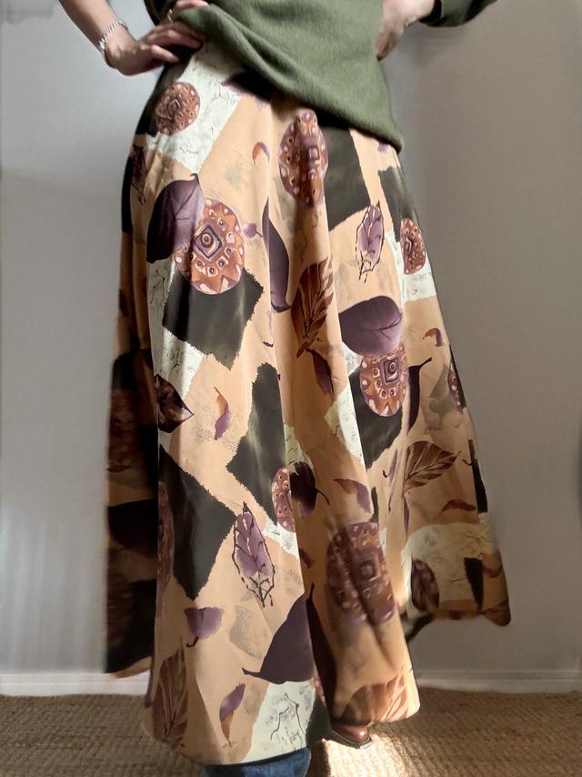 【STOCK SALE】used leaf pattern flare skirt 古着スカート 総柄スカート フレアスカート レディース古着 古着屋 ヴィンテージショップ