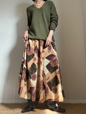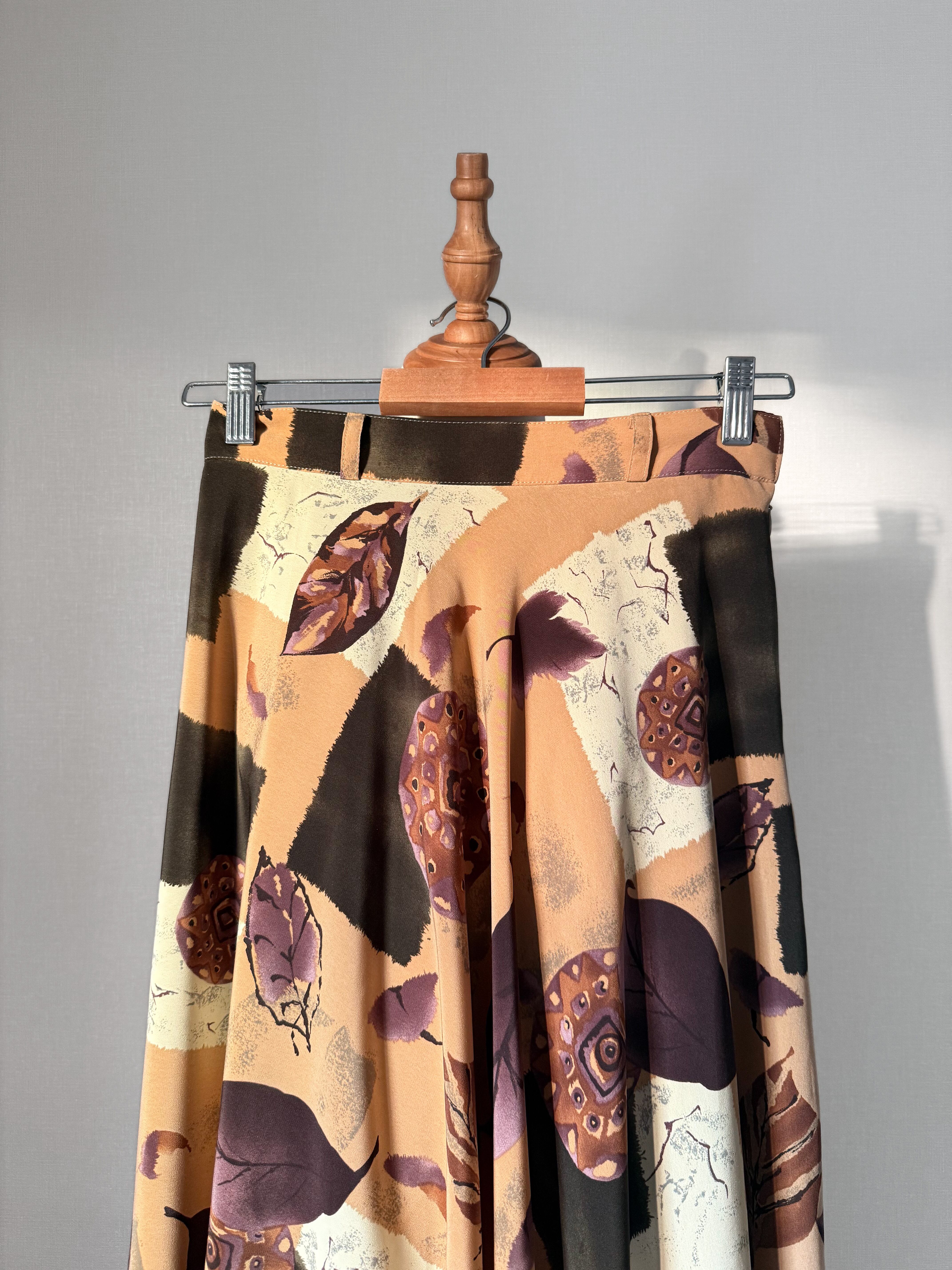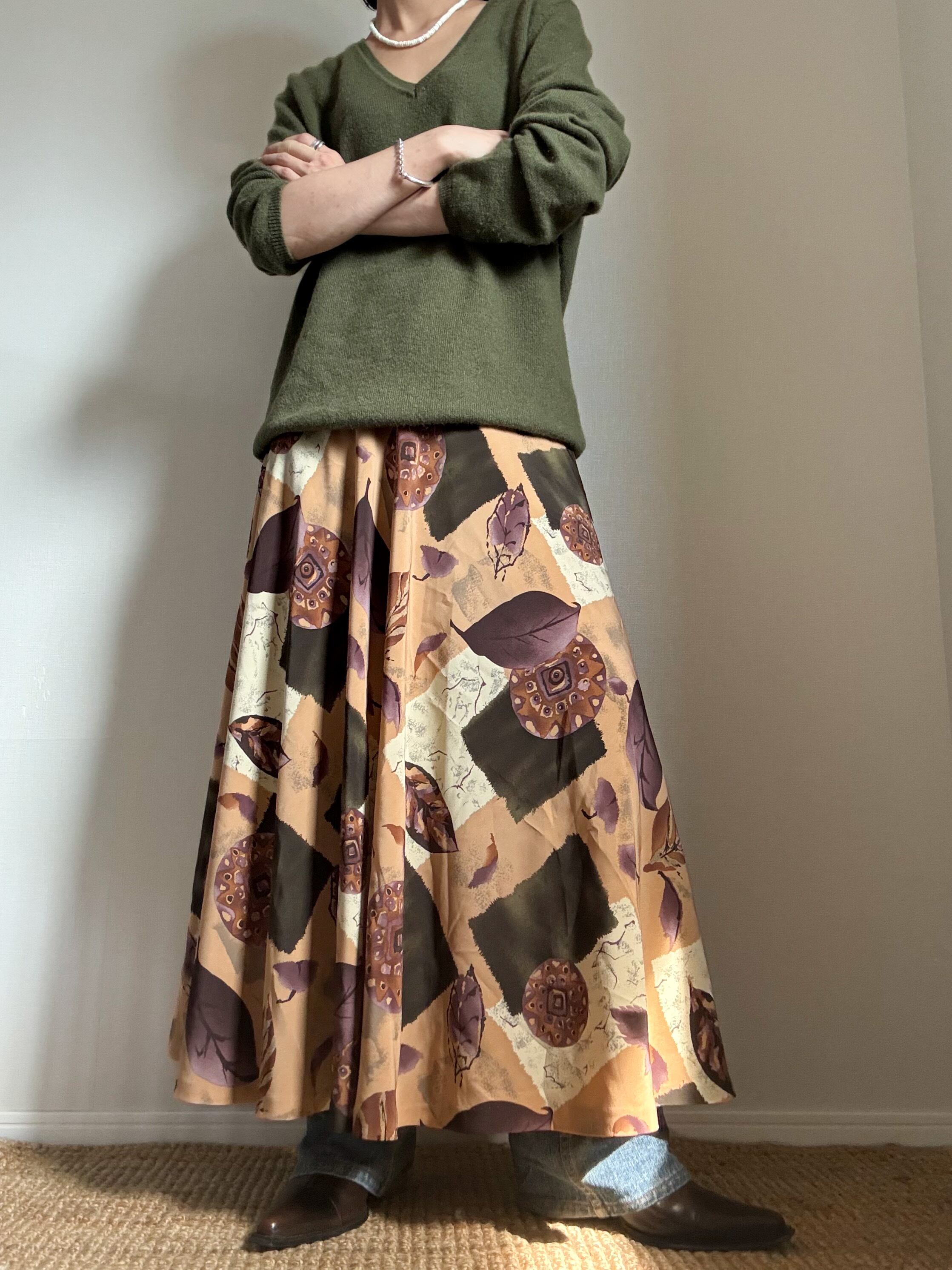 【STOCK SALE】used leaf pattern flare skirt 古着スカート 総柄スカート フレアスカート レディース古着 古着屋 ヴィンテージショップ