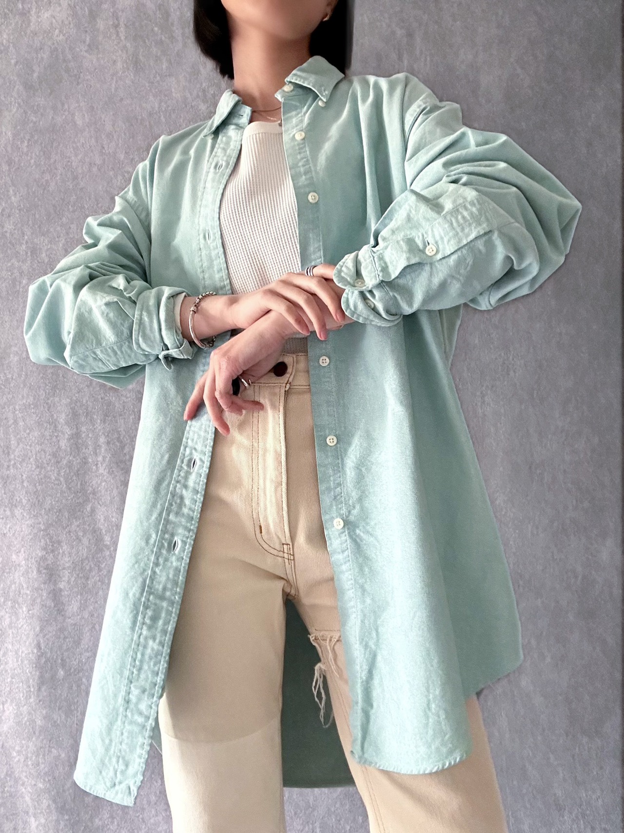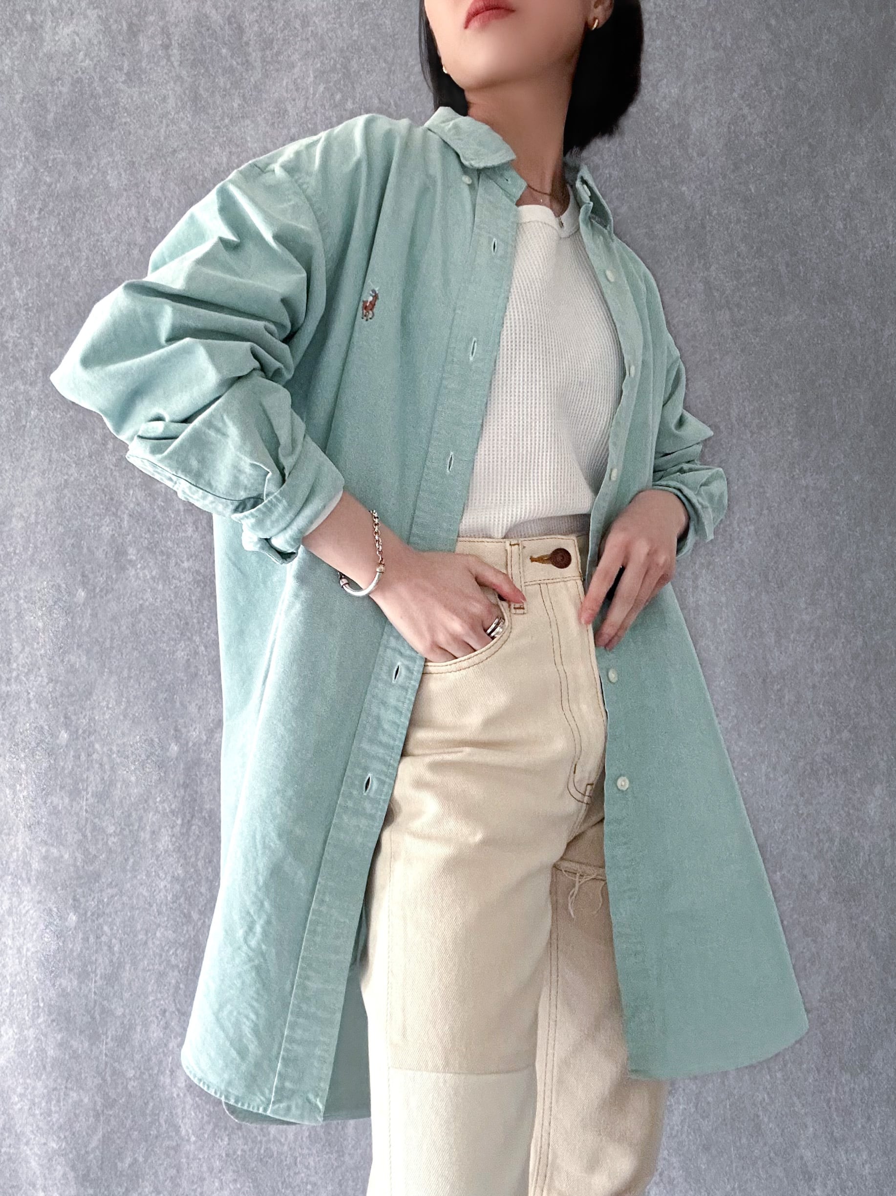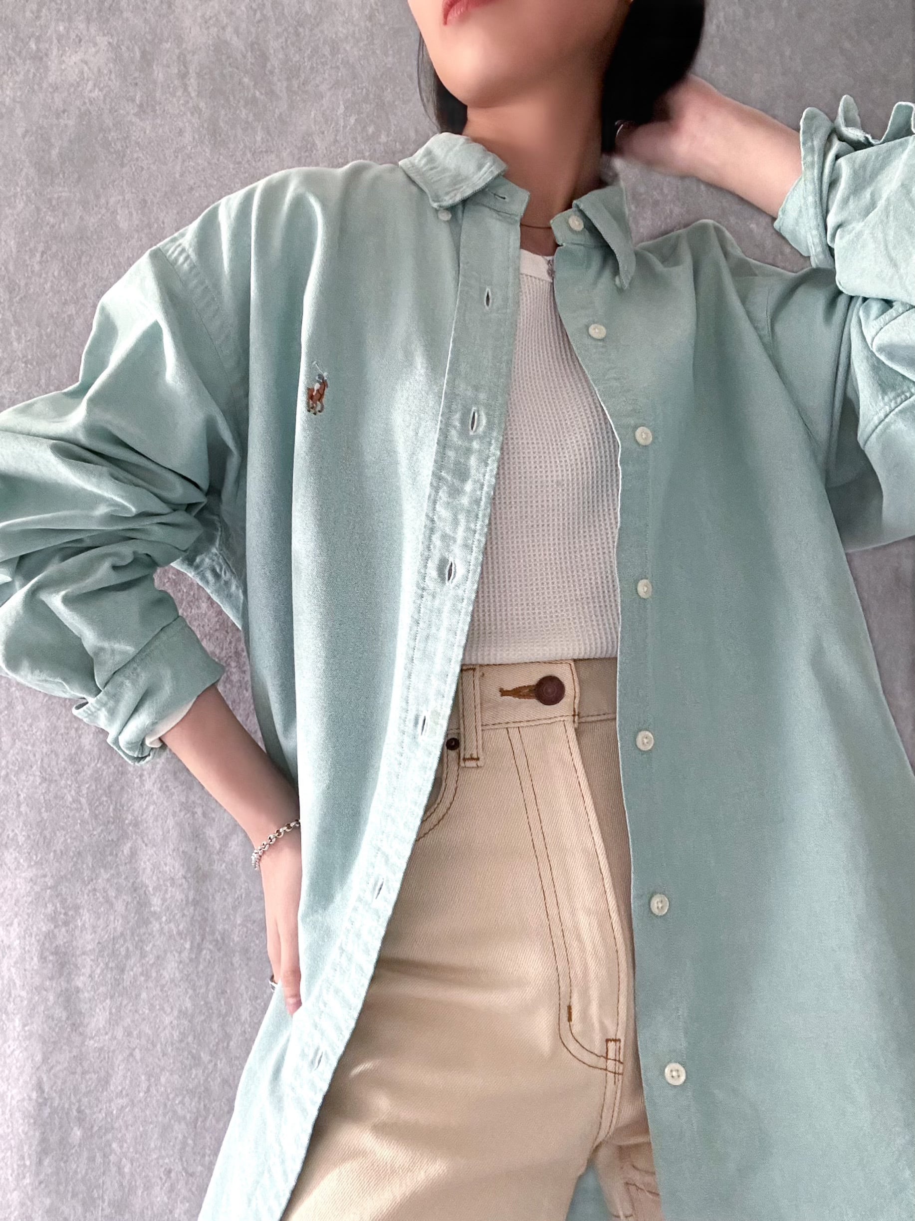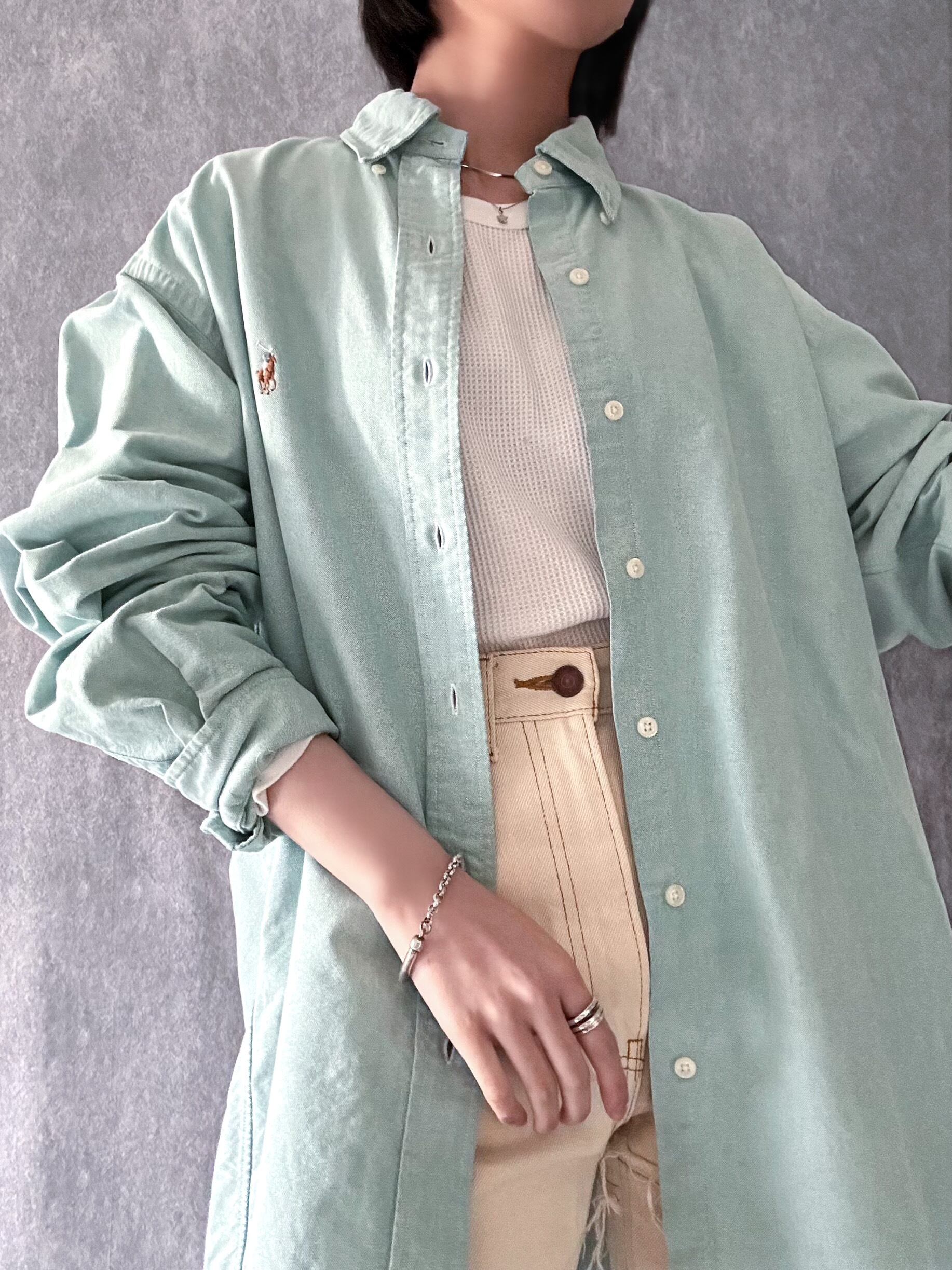 【ラルフローレン】ボタンダウンカラーシャツ 90年代 ラルフローレン ボタンダウンシャツ ミントグリーン カジュアル シンプル アメカジ オーバサイズ ユニセックス メンズ レディース 古着 ヴィンテージ