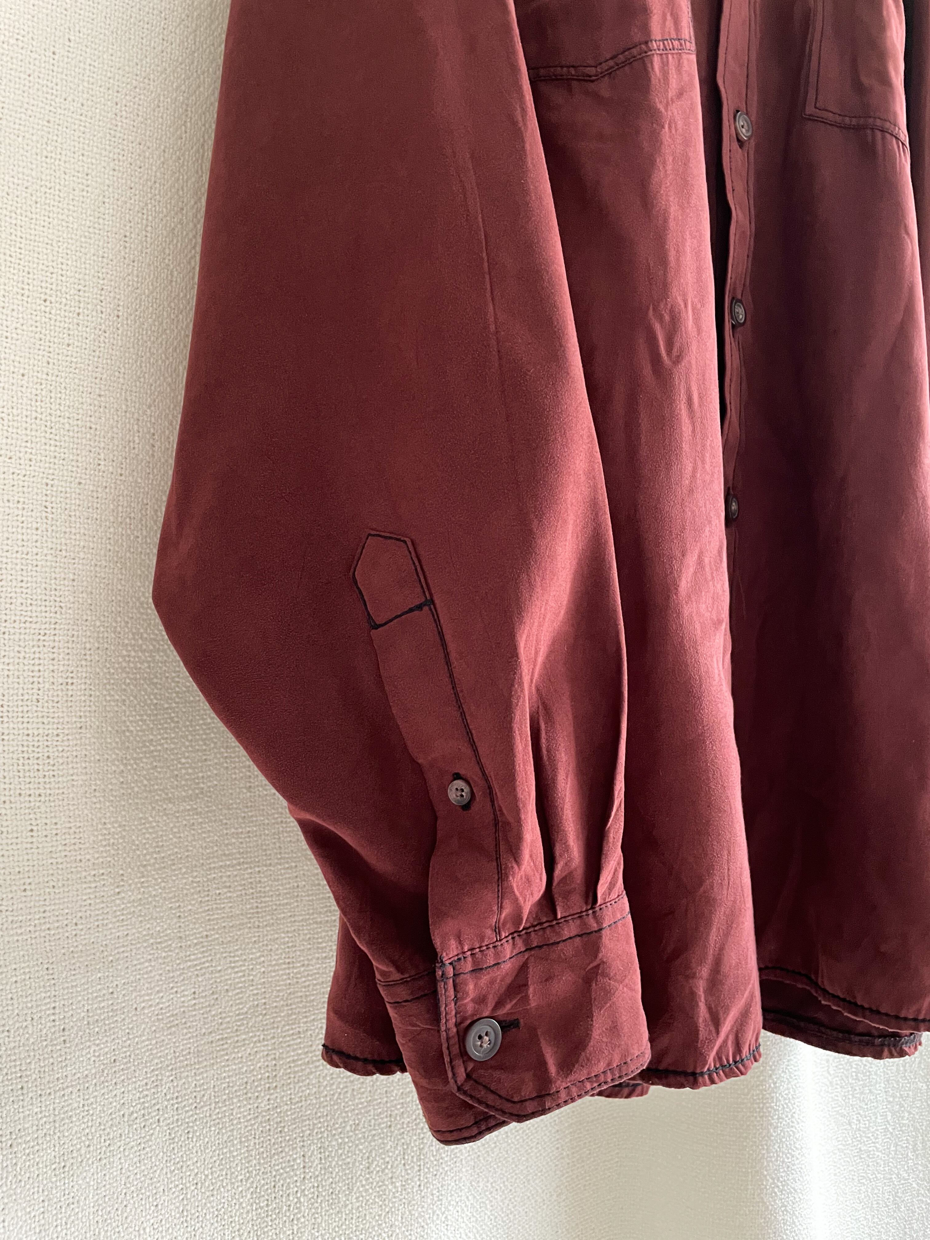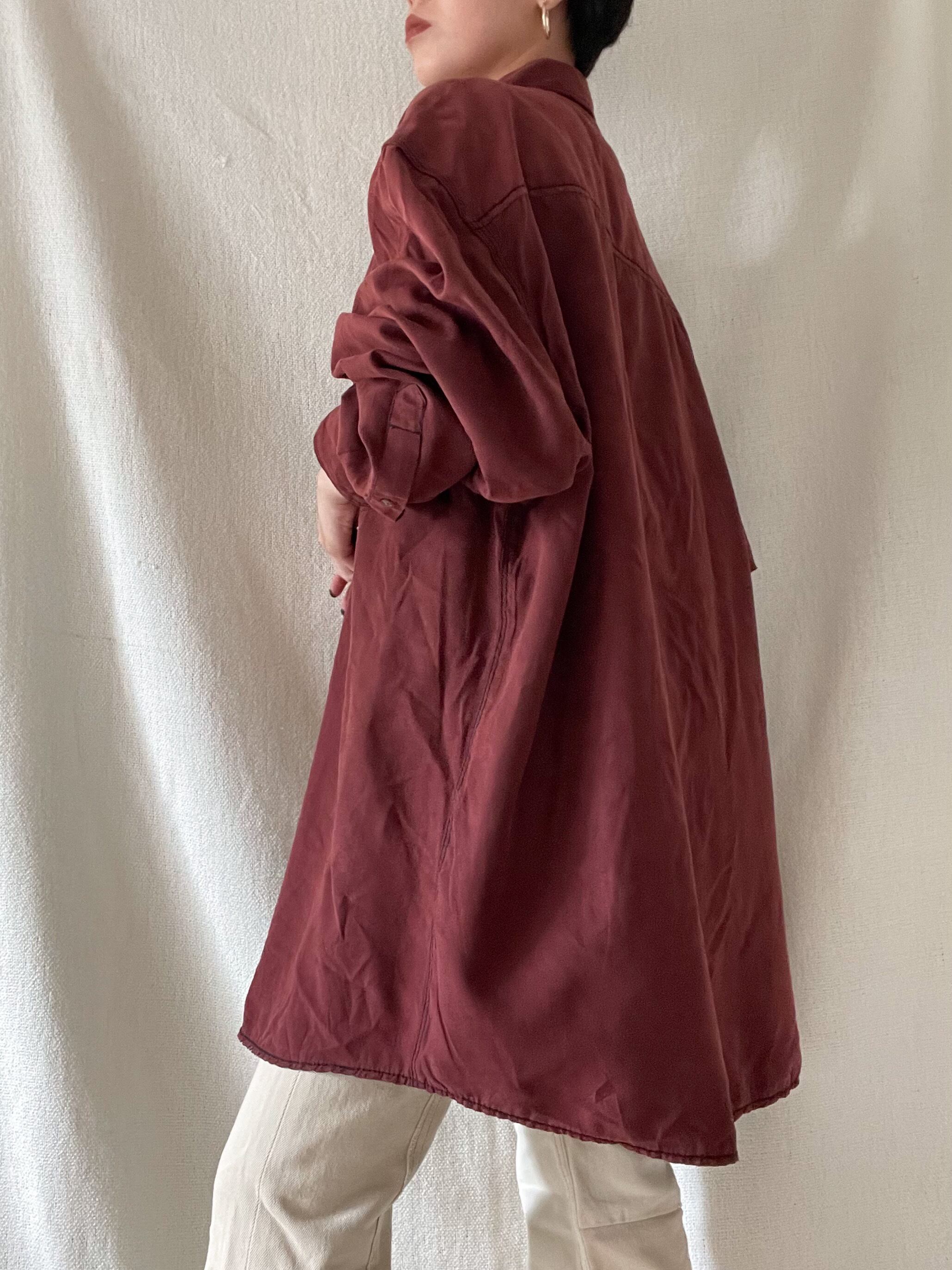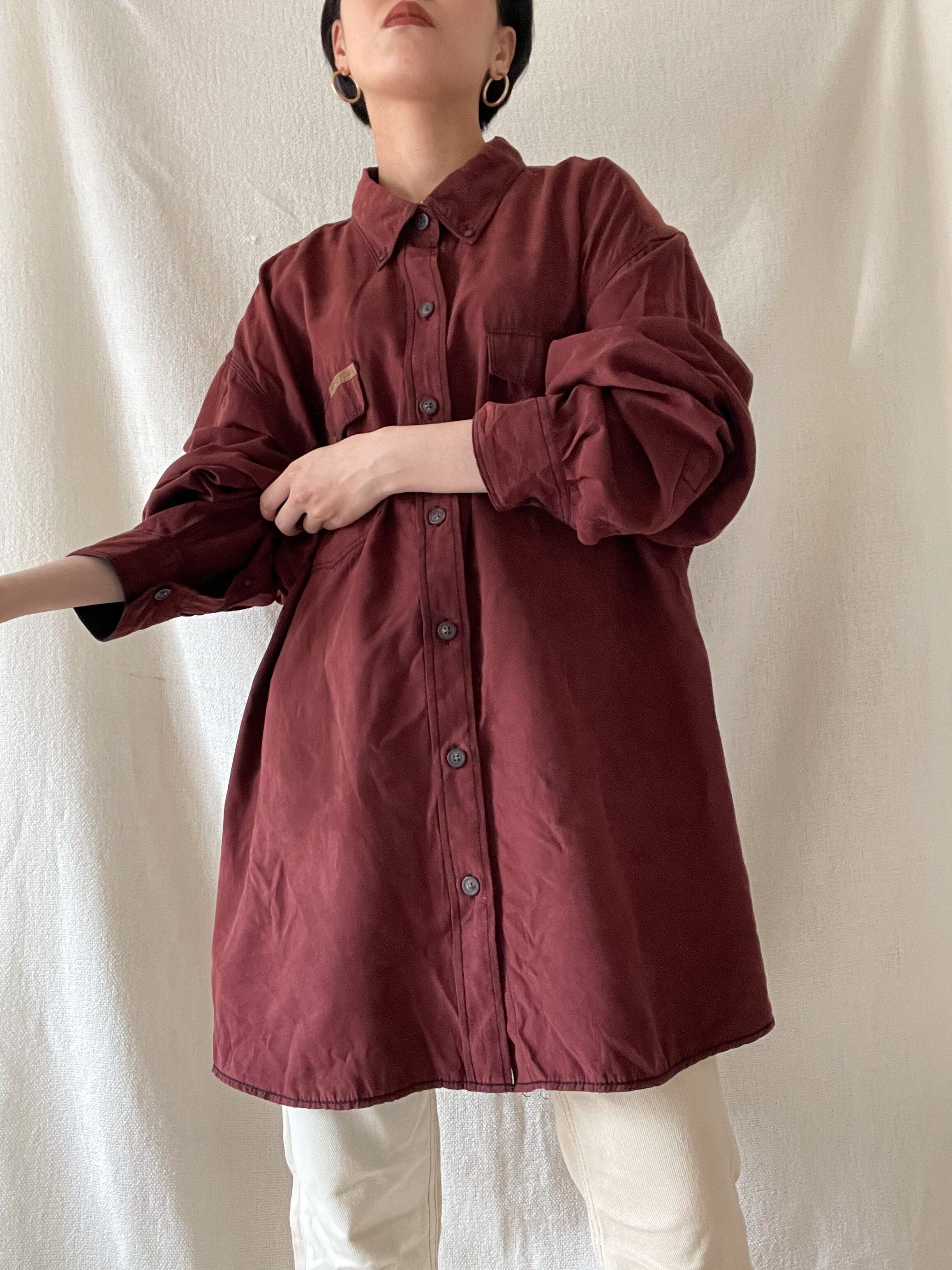 90s bottundown big shirt 90年代 ボタンダウン シャツ メンズシャツ ビッグシャツ ボルドー 古着屋 レディース古着 ヴィンテージ古着 古着シャツ メンズライク ユニセックス アメカジ ヴィンテージショップ
