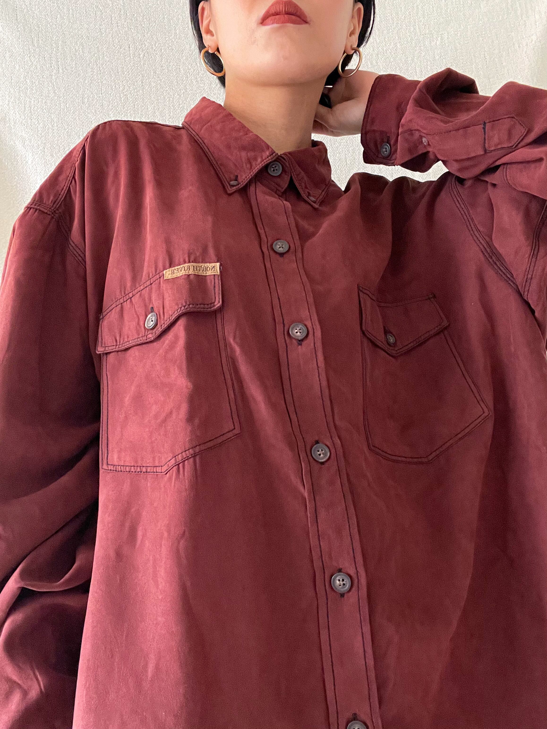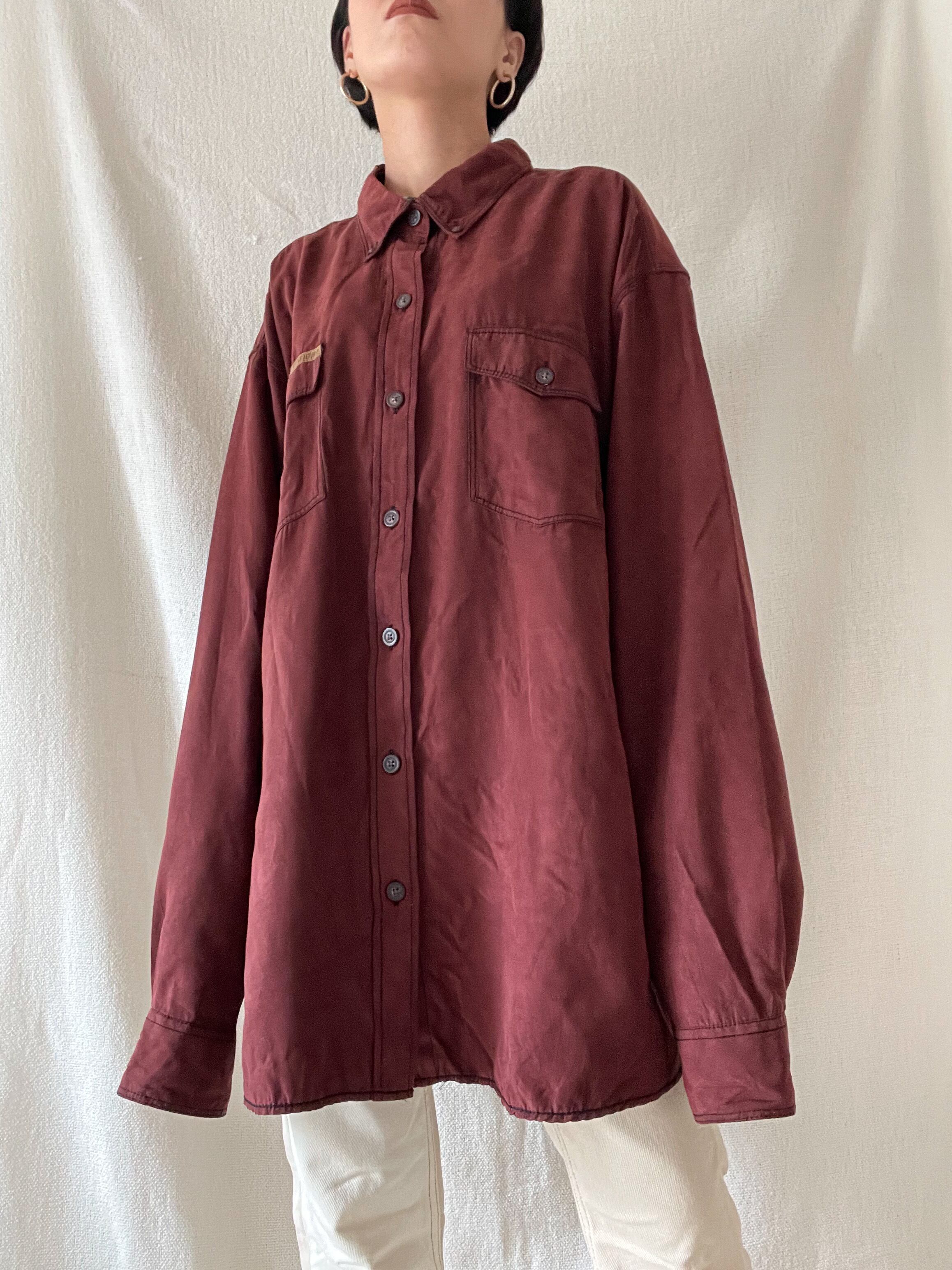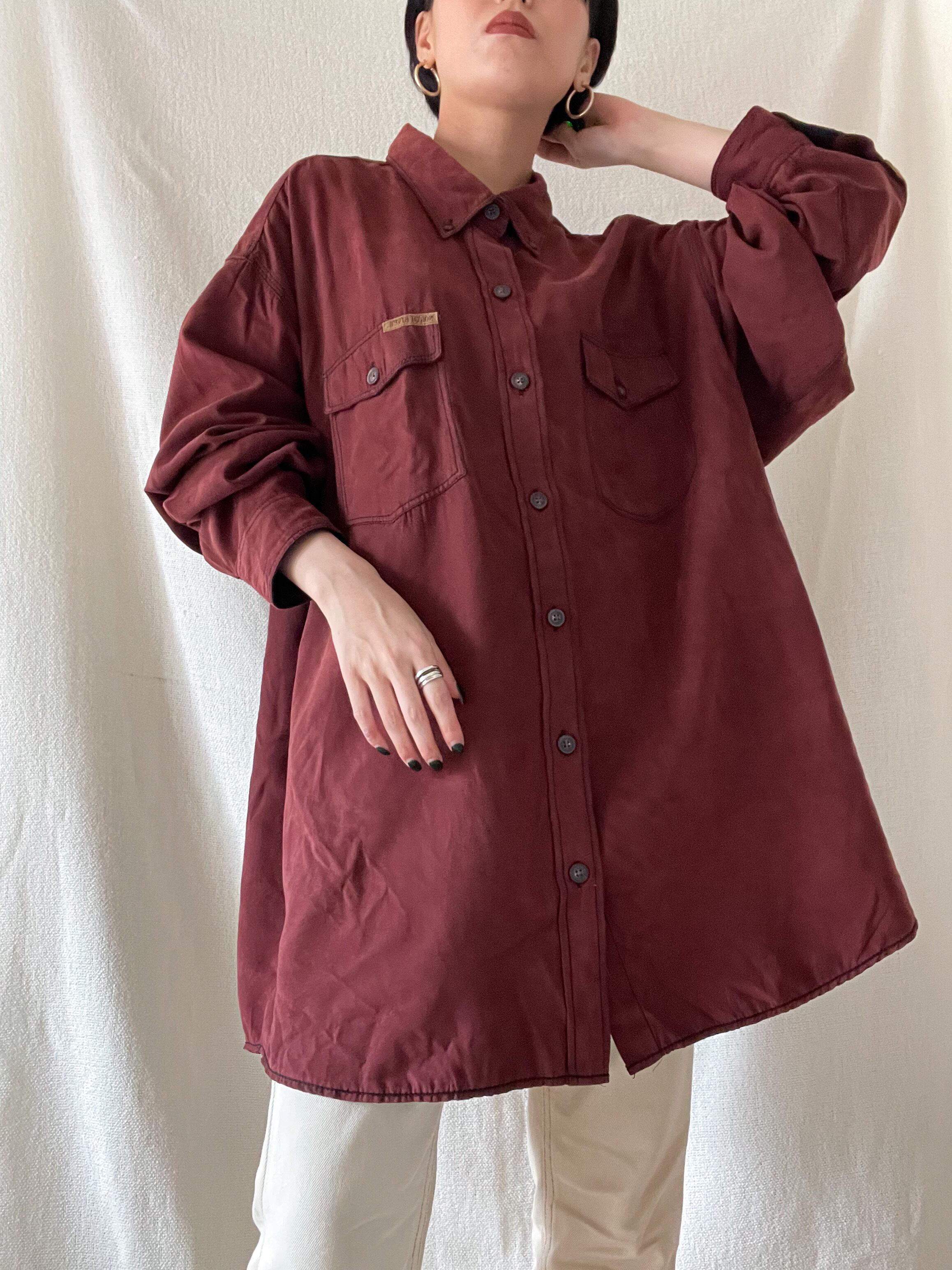 90s bottundown big shirt 90年代 ボタンダウン シャツ メンズシャツ ビッグシャツ ボルドー 古着屋 レディース古着 ヴィンテージ古着 古着シャツ メンズライク ユニセックス アメカジ ヴィンテージショップ