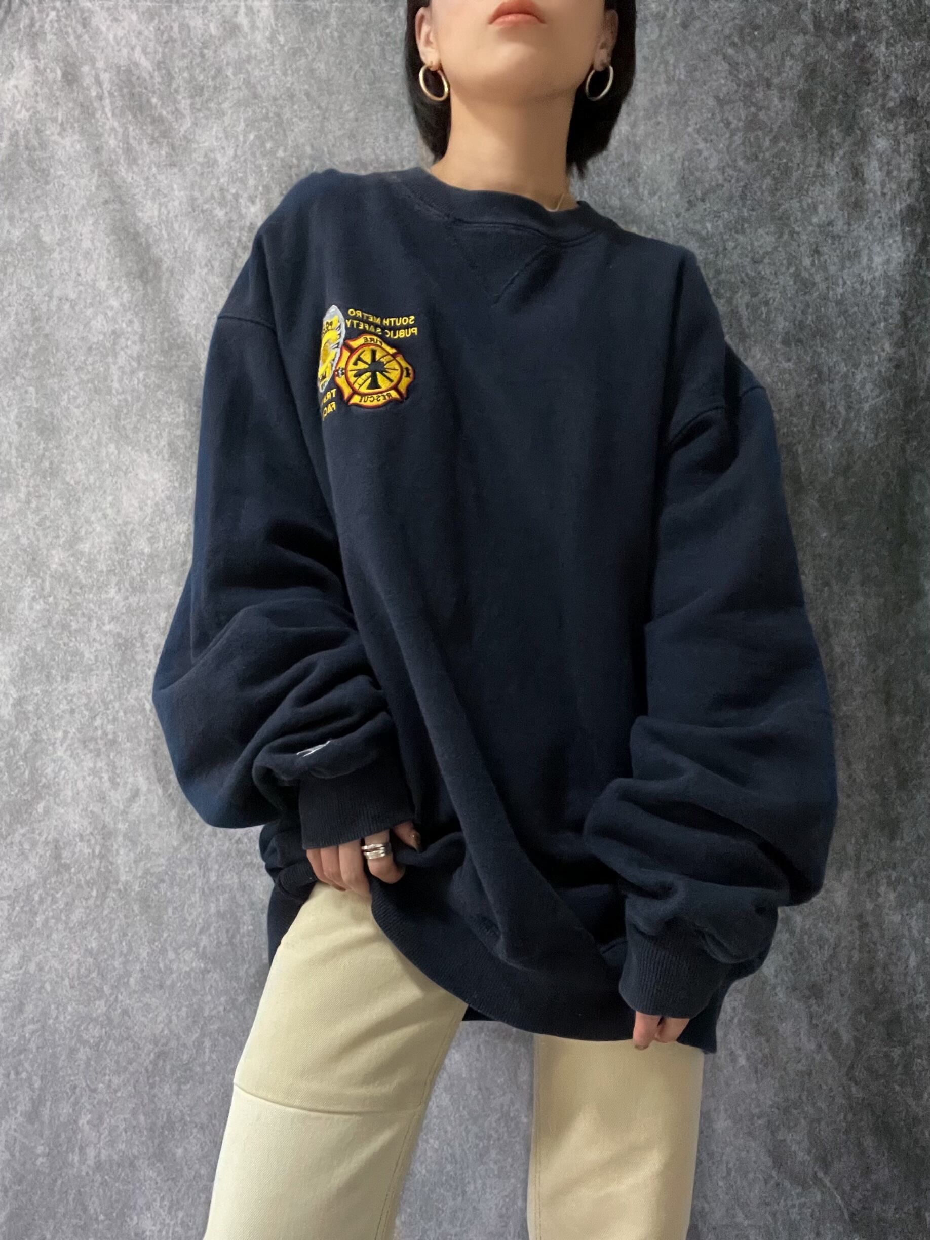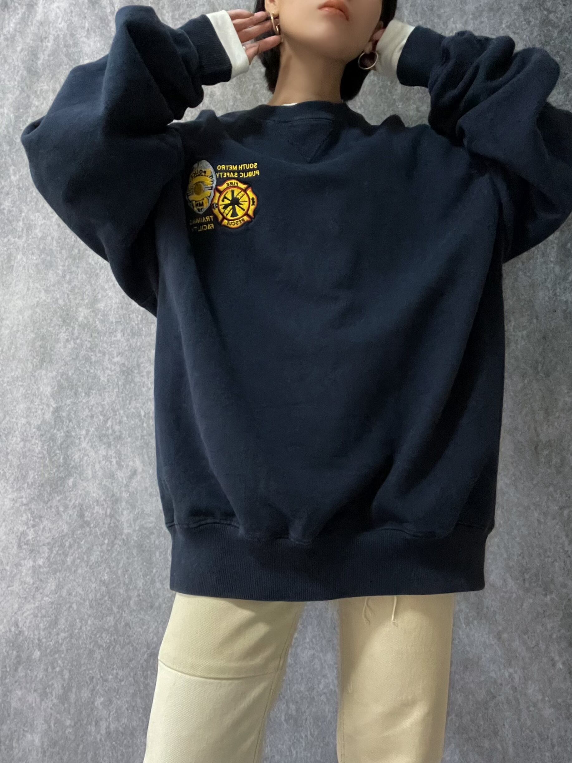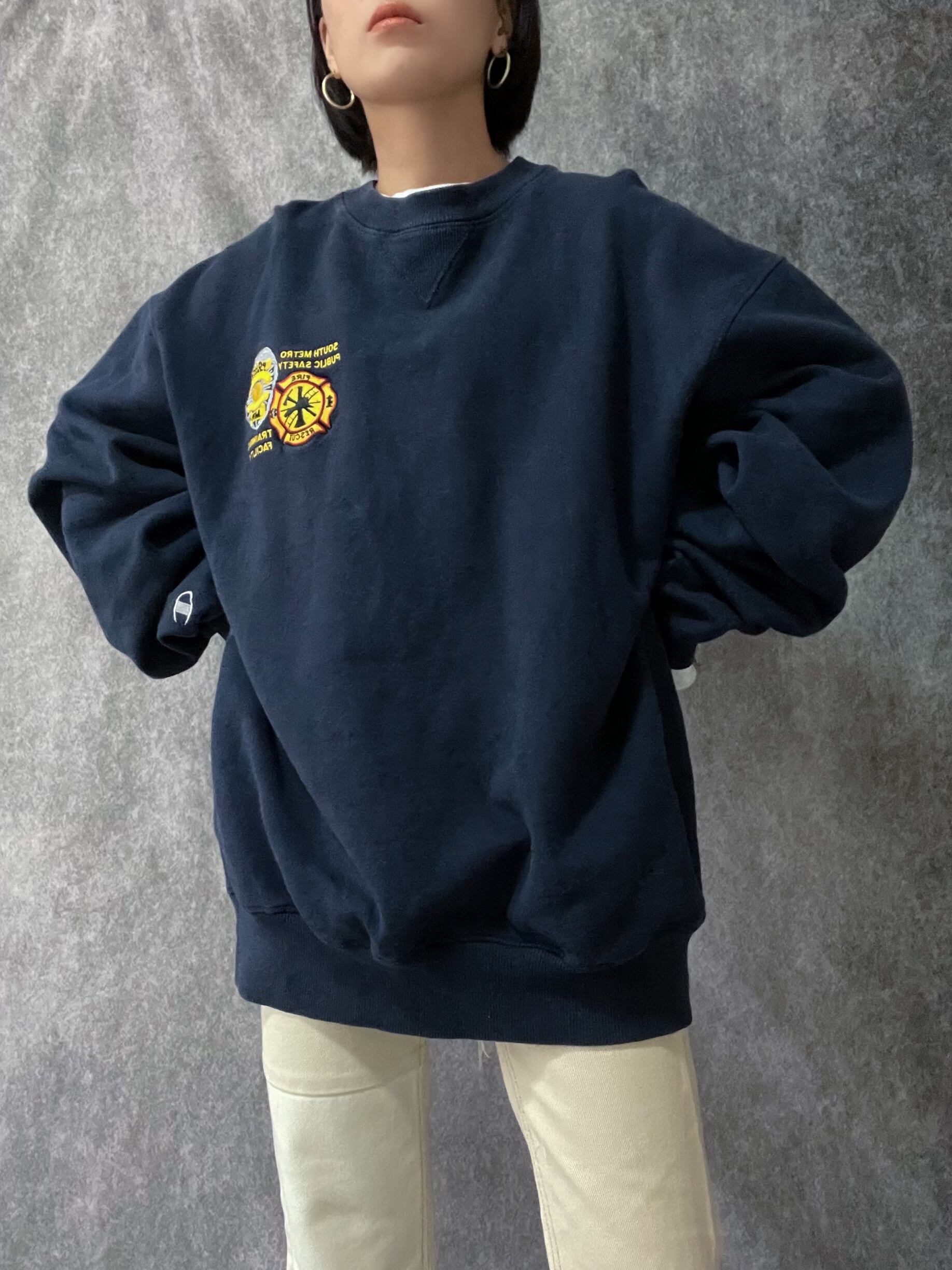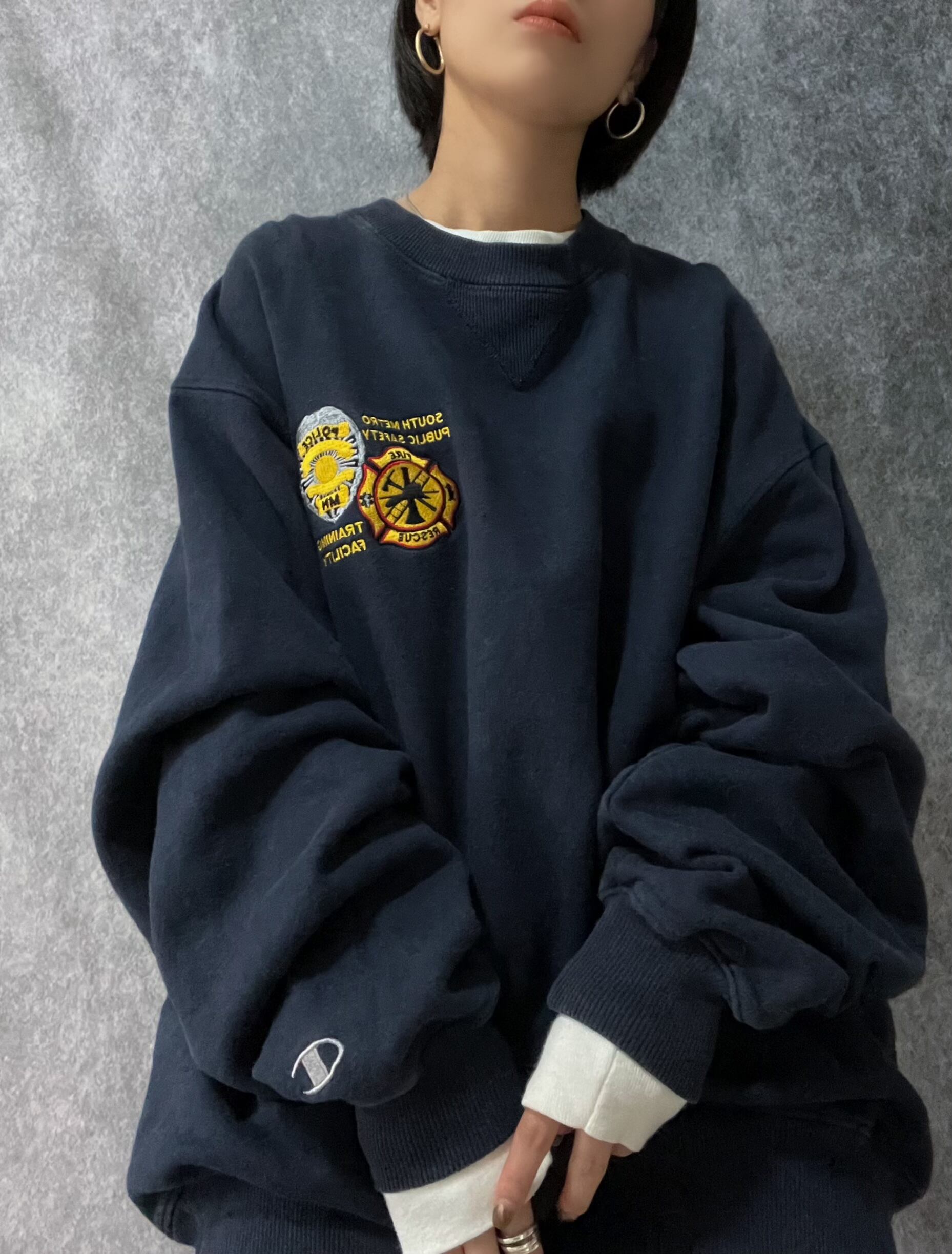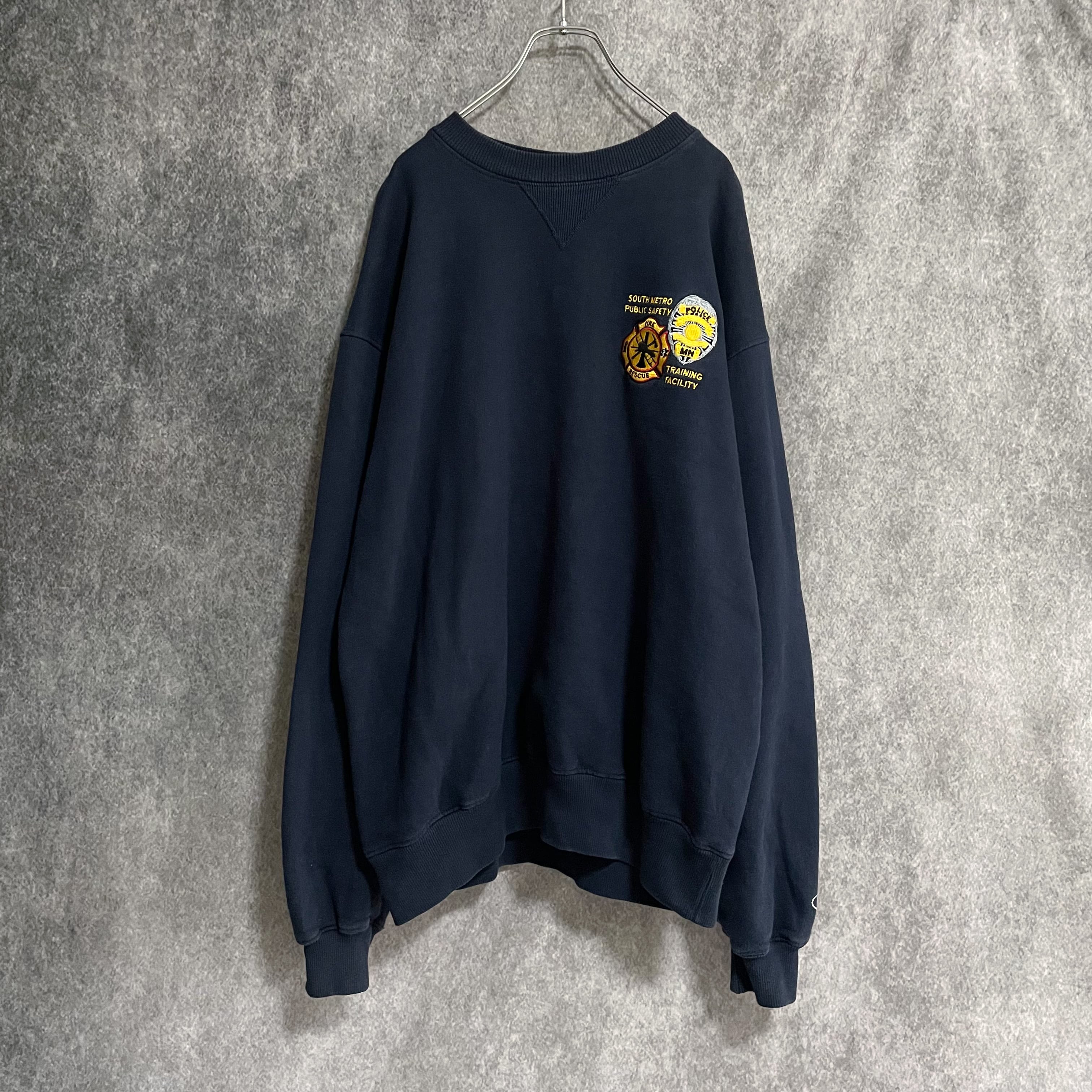 【チャンピオン】刺繍ワッペンスウェット champion チャンピオン スウェット トレーナー ネイビー ワンポイント ワッペン カジュアル レディース古着 古着トップス トップス 古着屋 ヴィンテージショップ
