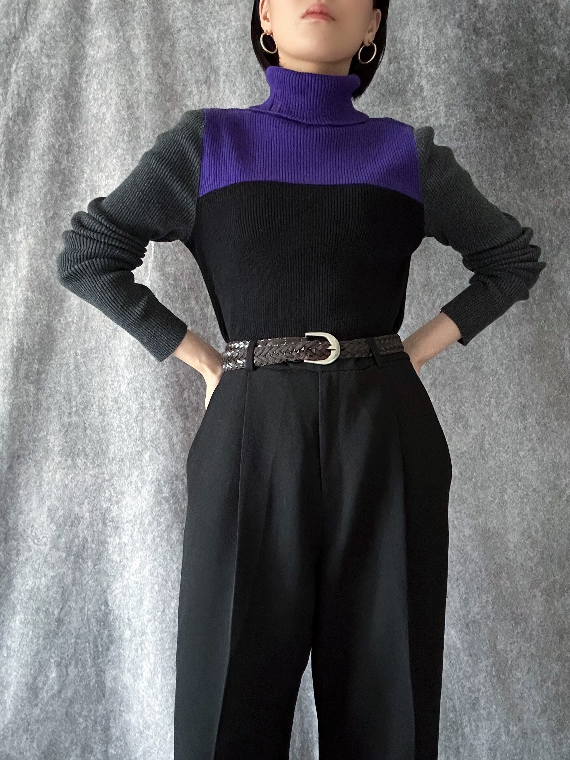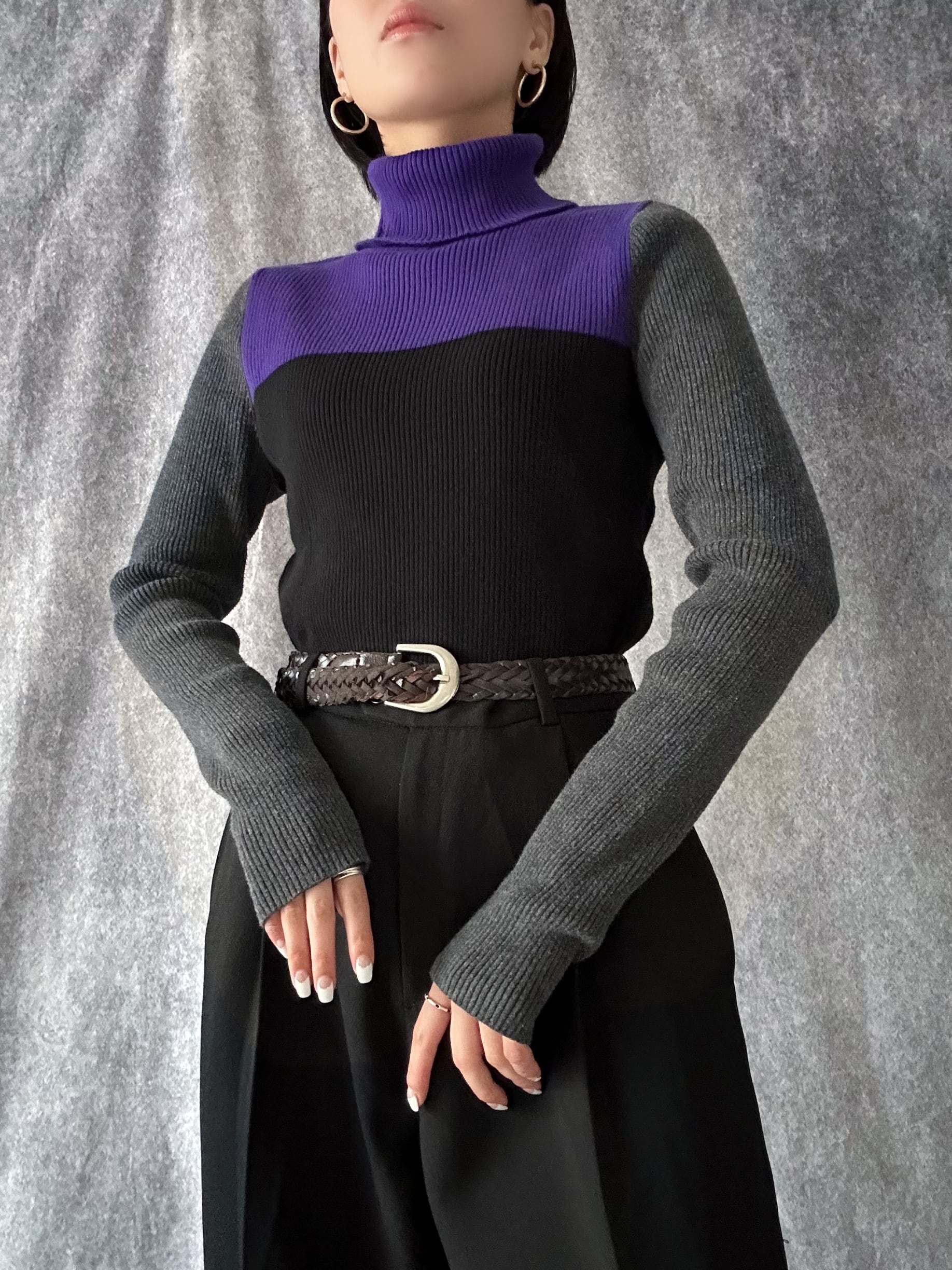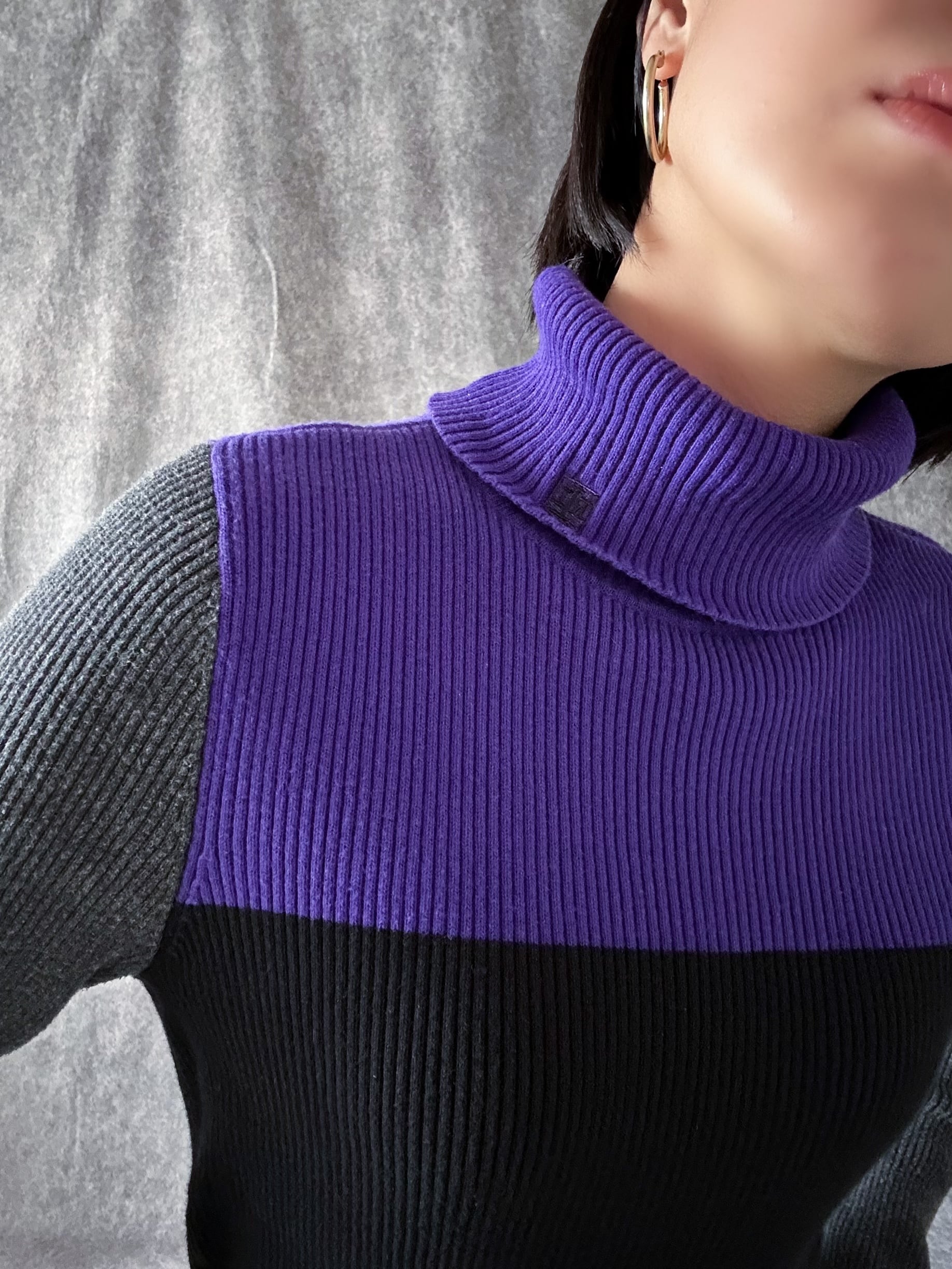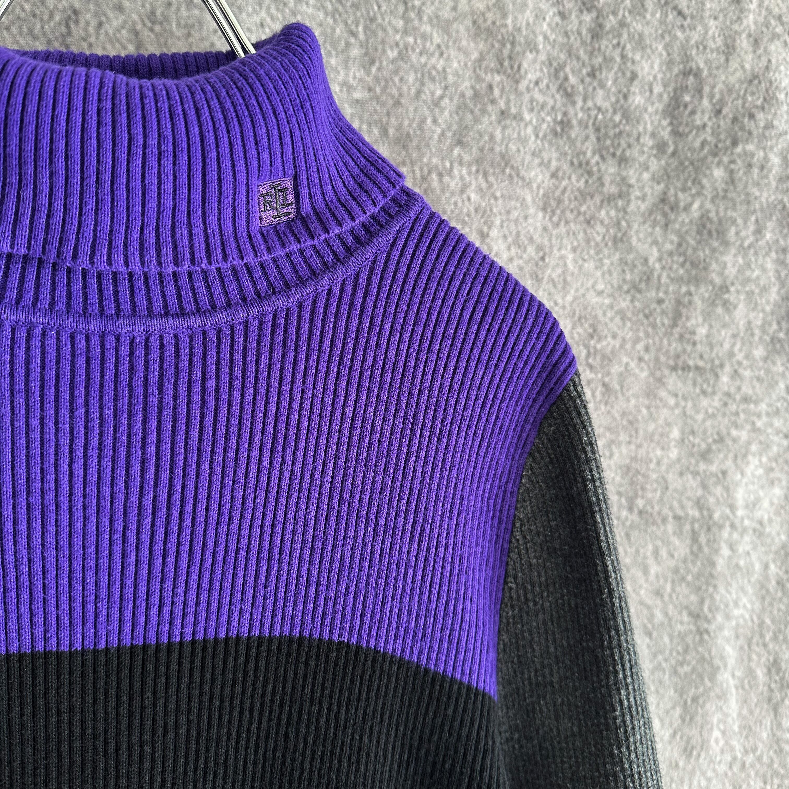 【LAUREN RALPH LAUREN】90s switching color knit (purple) ラルフローレン ニット 無地 ワンポイント タートルネック パープル レディース古着 レディースニット 古着ニット 古着屋 ヴィンテージショップ