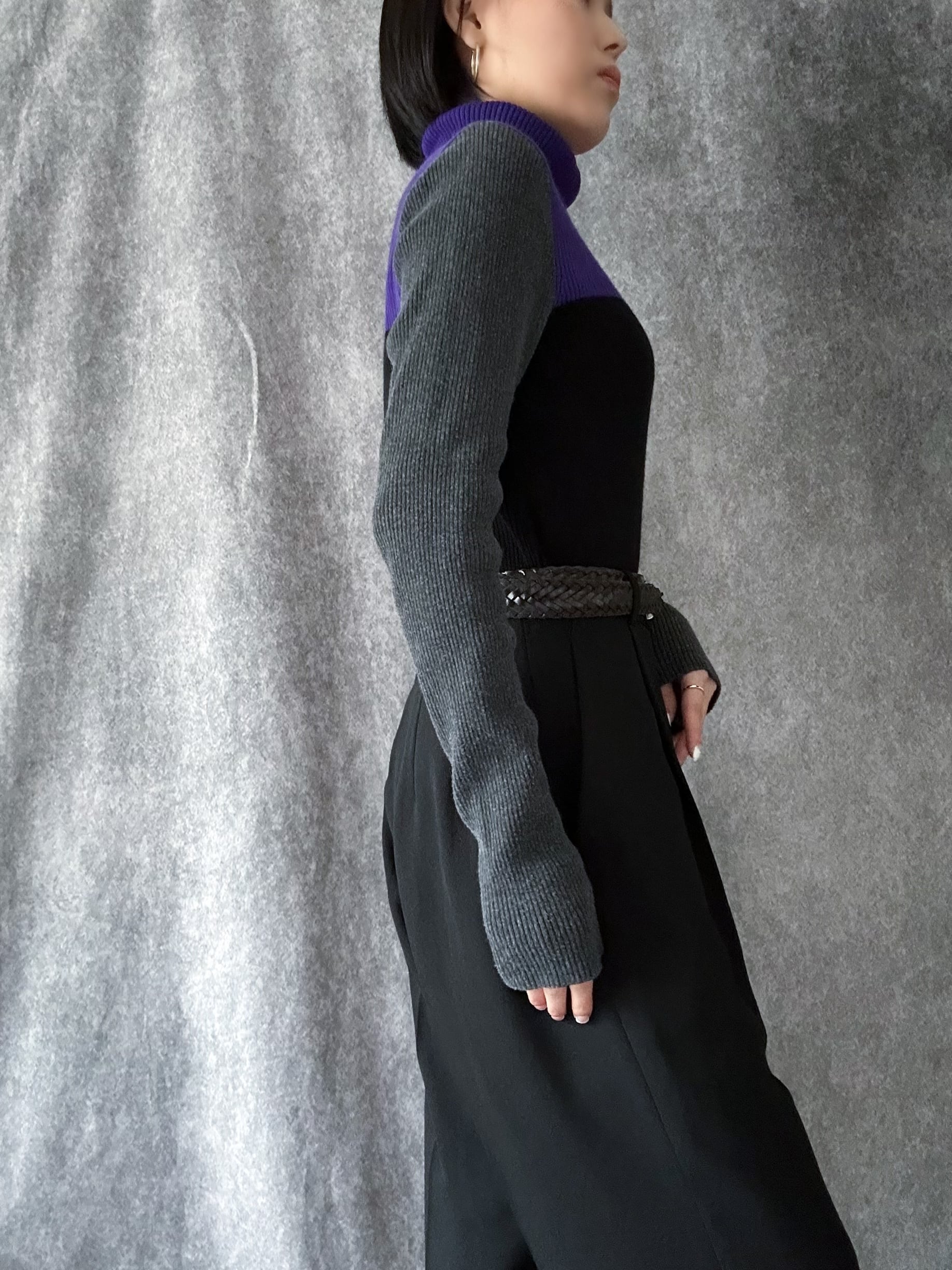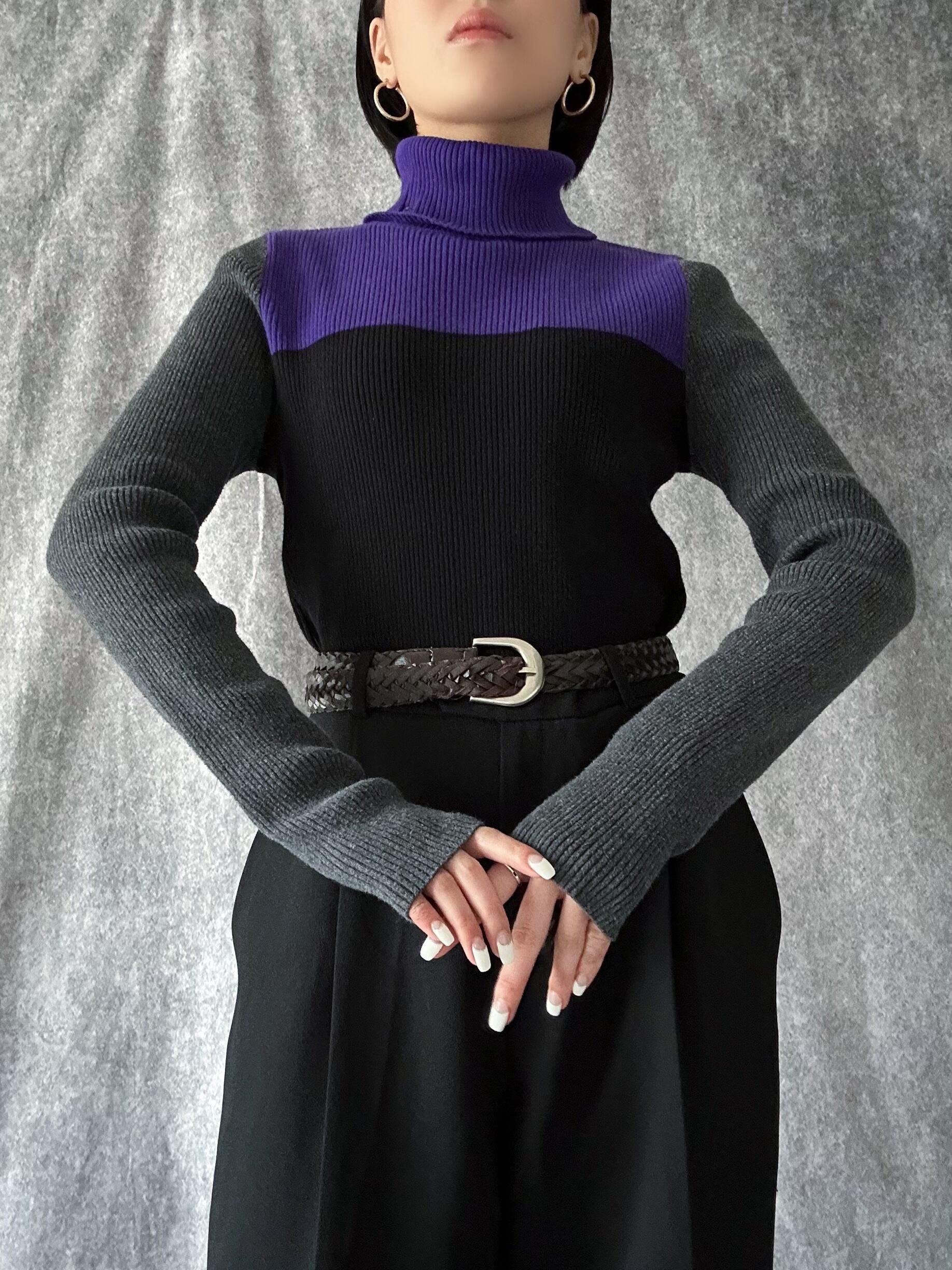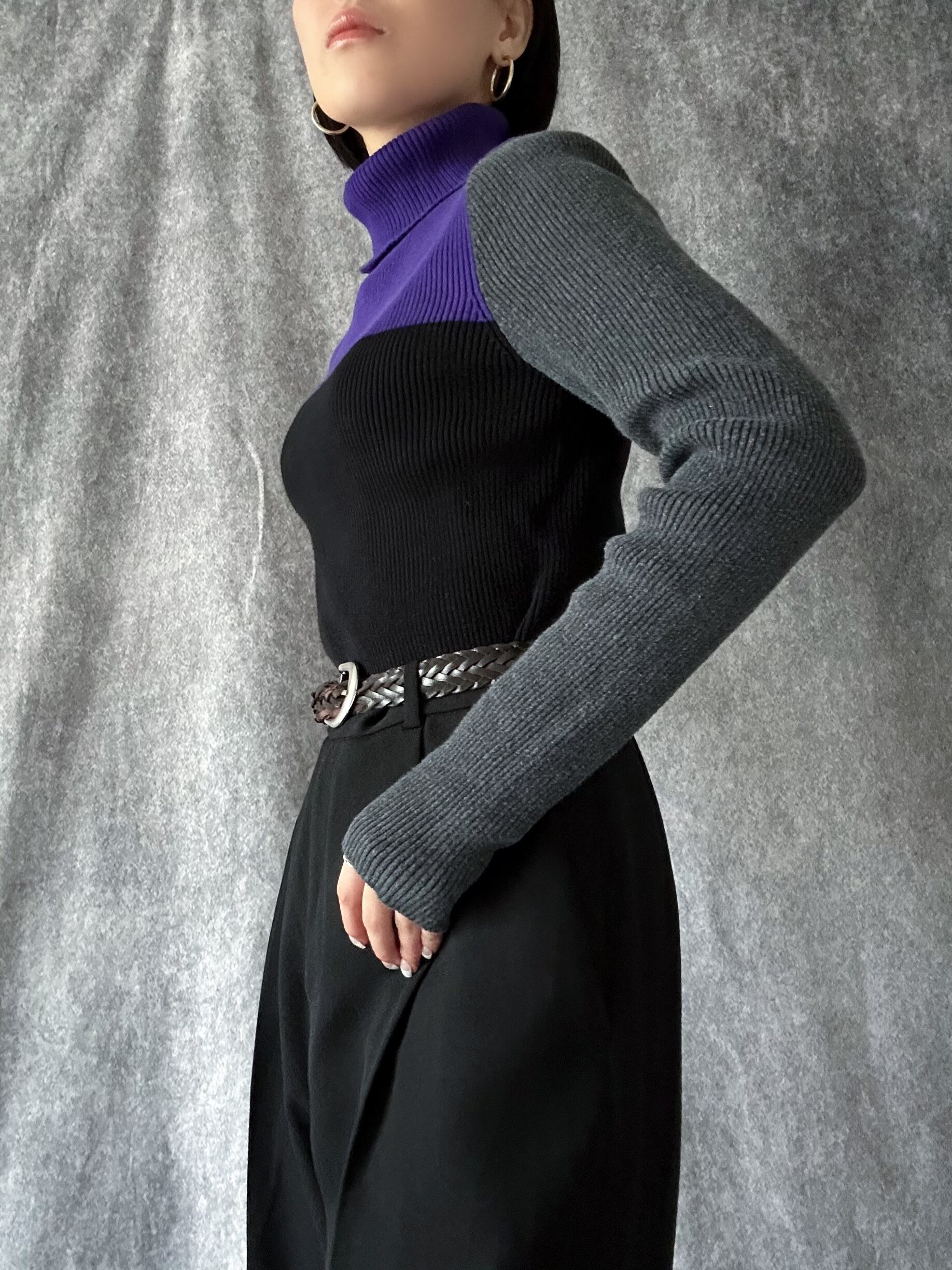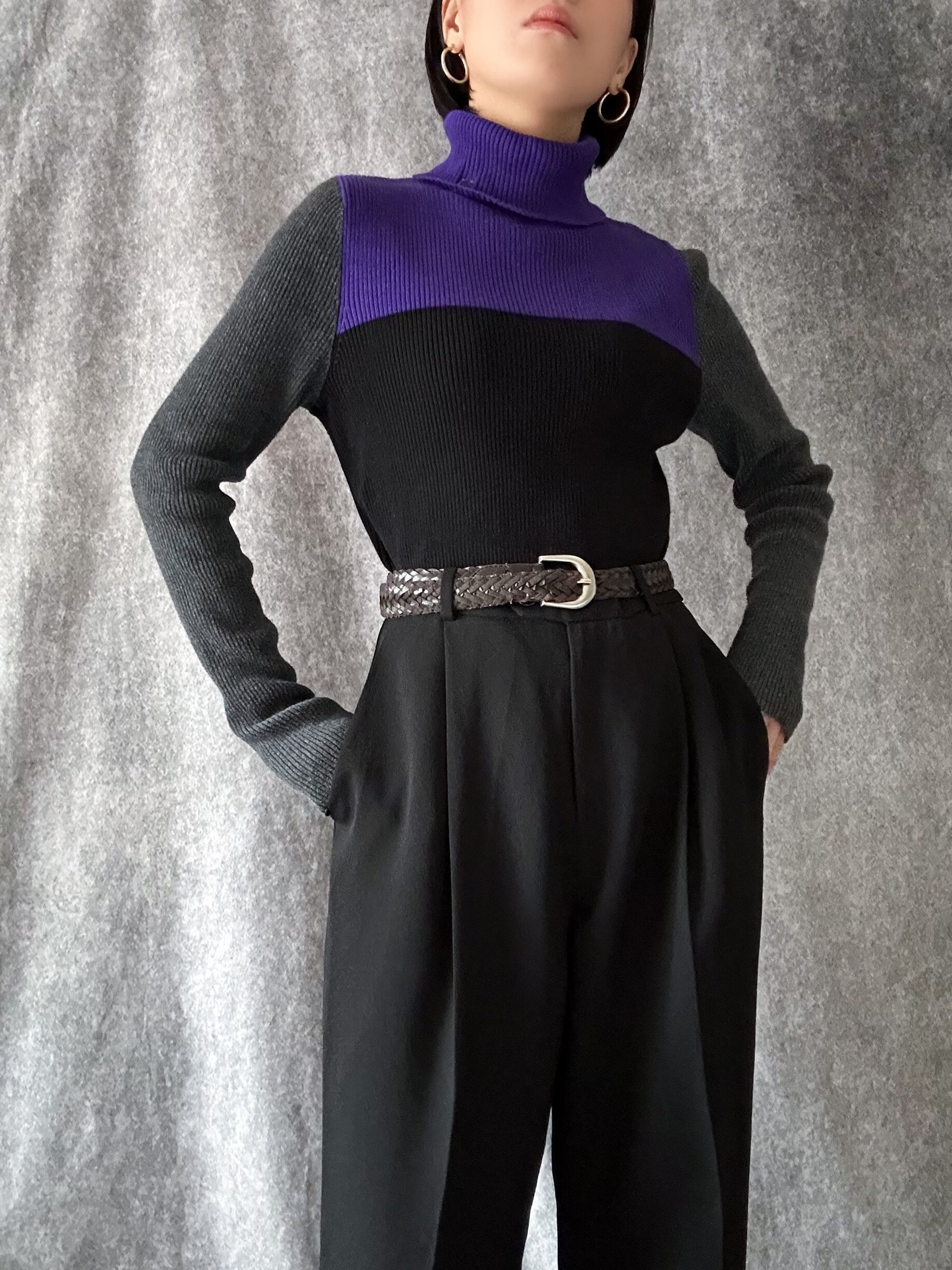 【LAUREN RALPH LAUREN】90s switching color knit (purple) ラルフローレン ニット 無地 ワンポイント タートルネック パープル レディース古着 レディースニット 古着ニット 古着屋 ヴィンテージショップ