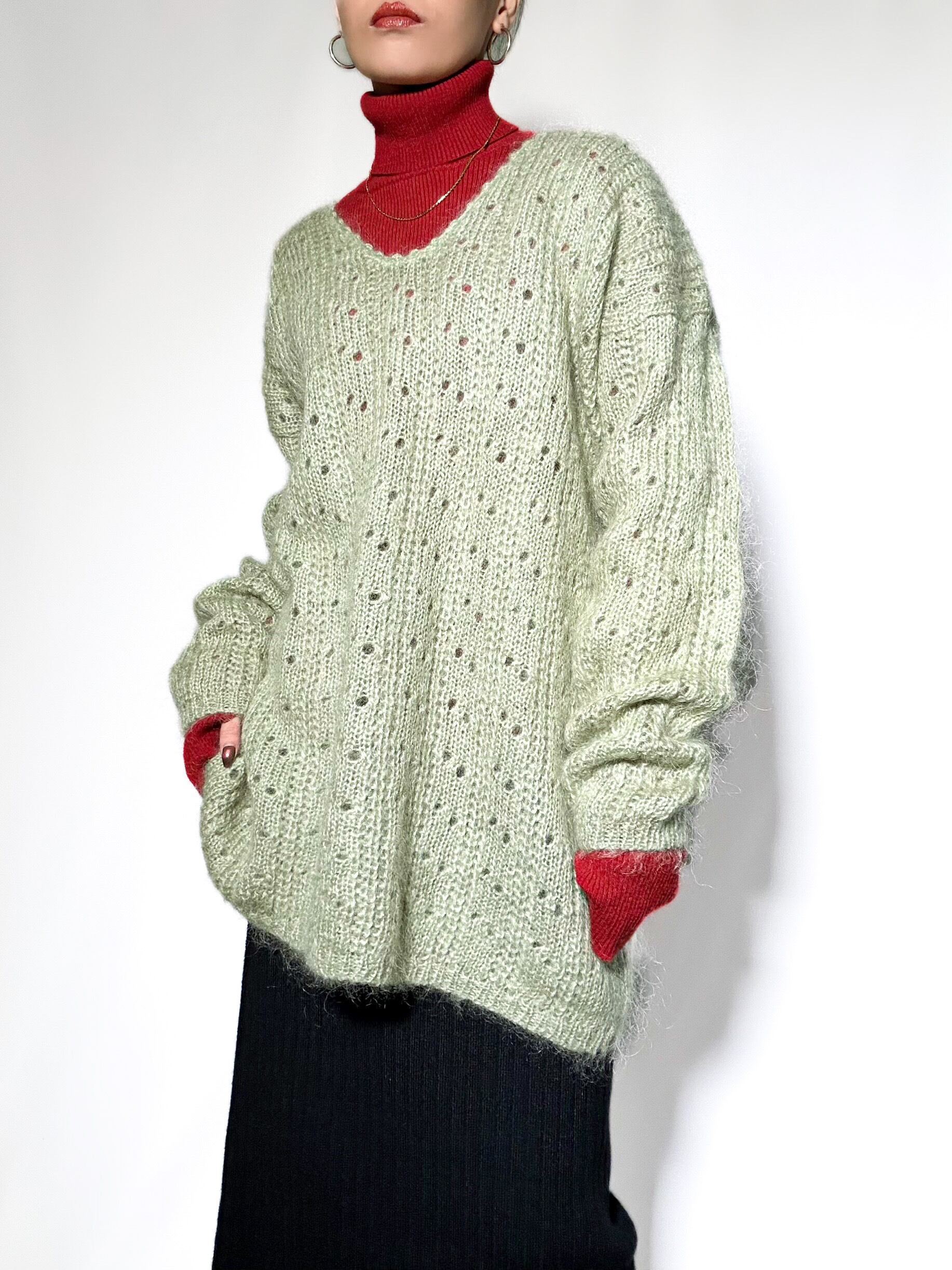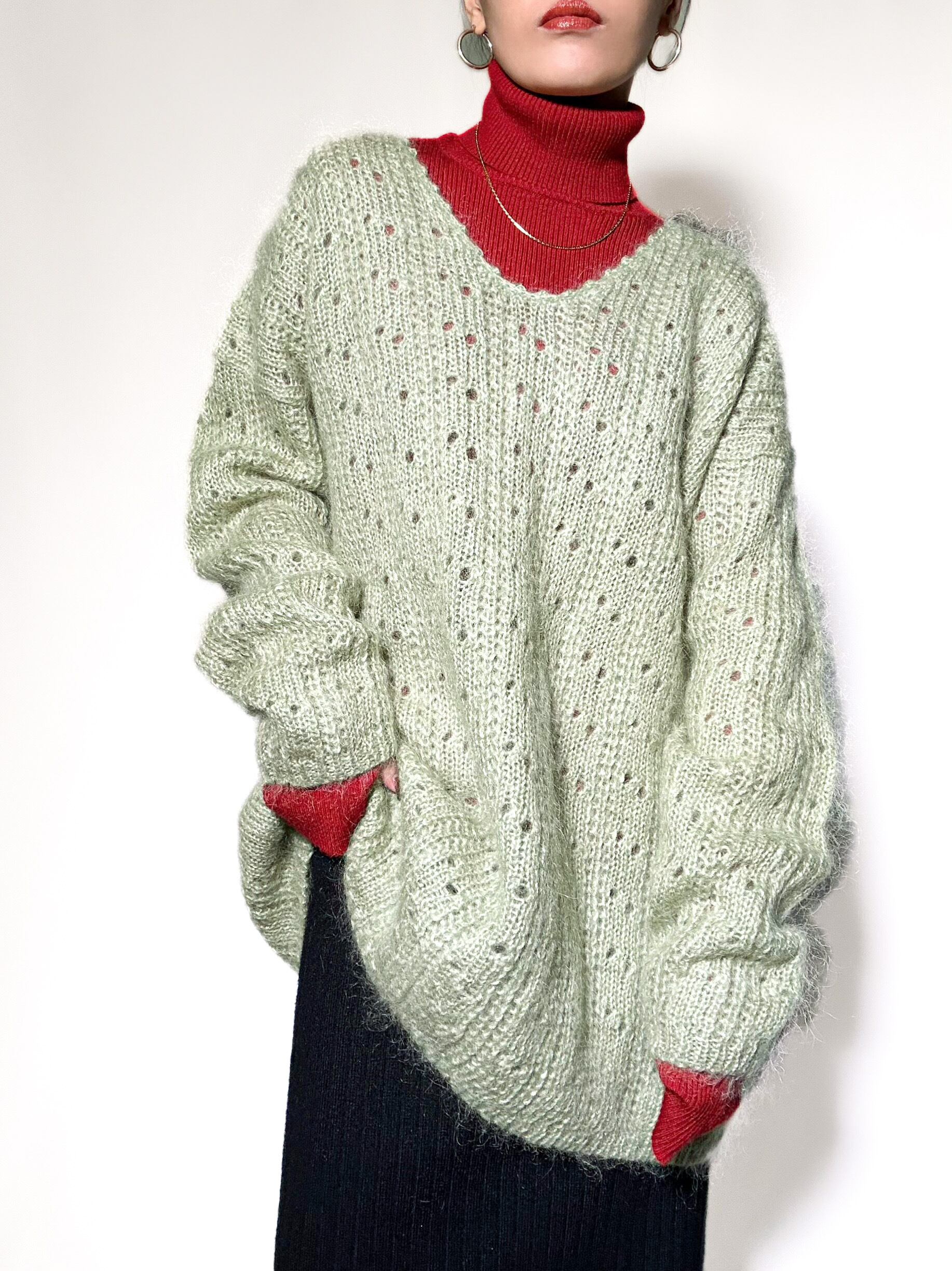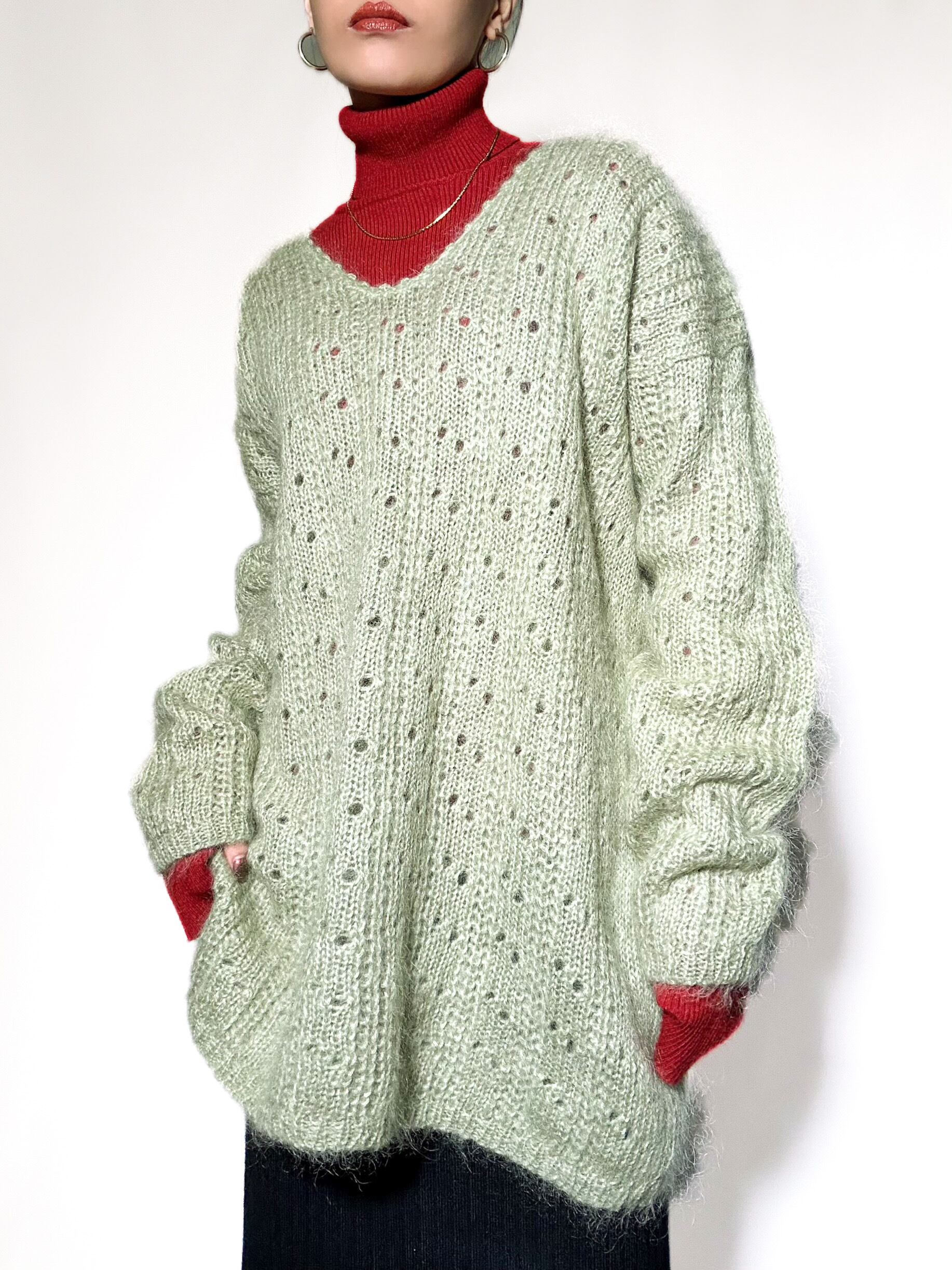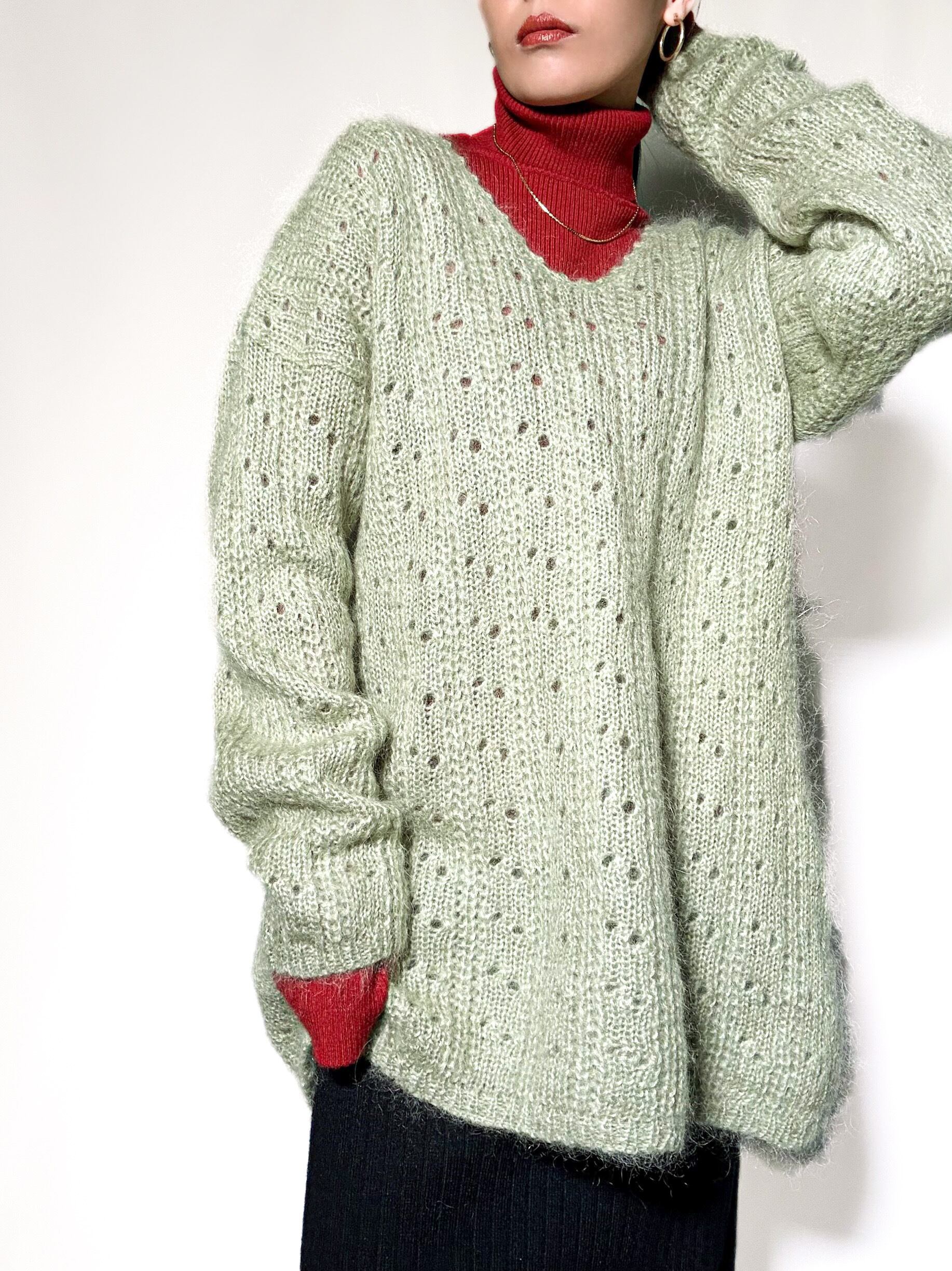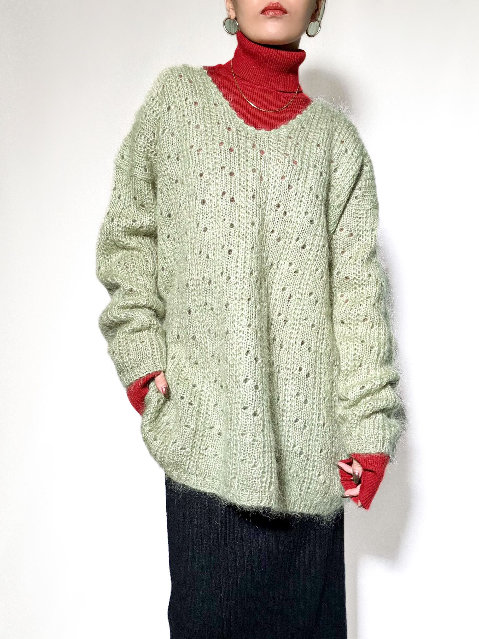used mohair vneck knit 90年代 モヘアニット グリーン Vネックニット 古着ニット レディース古着 古着屋 ヴィンテージショップ