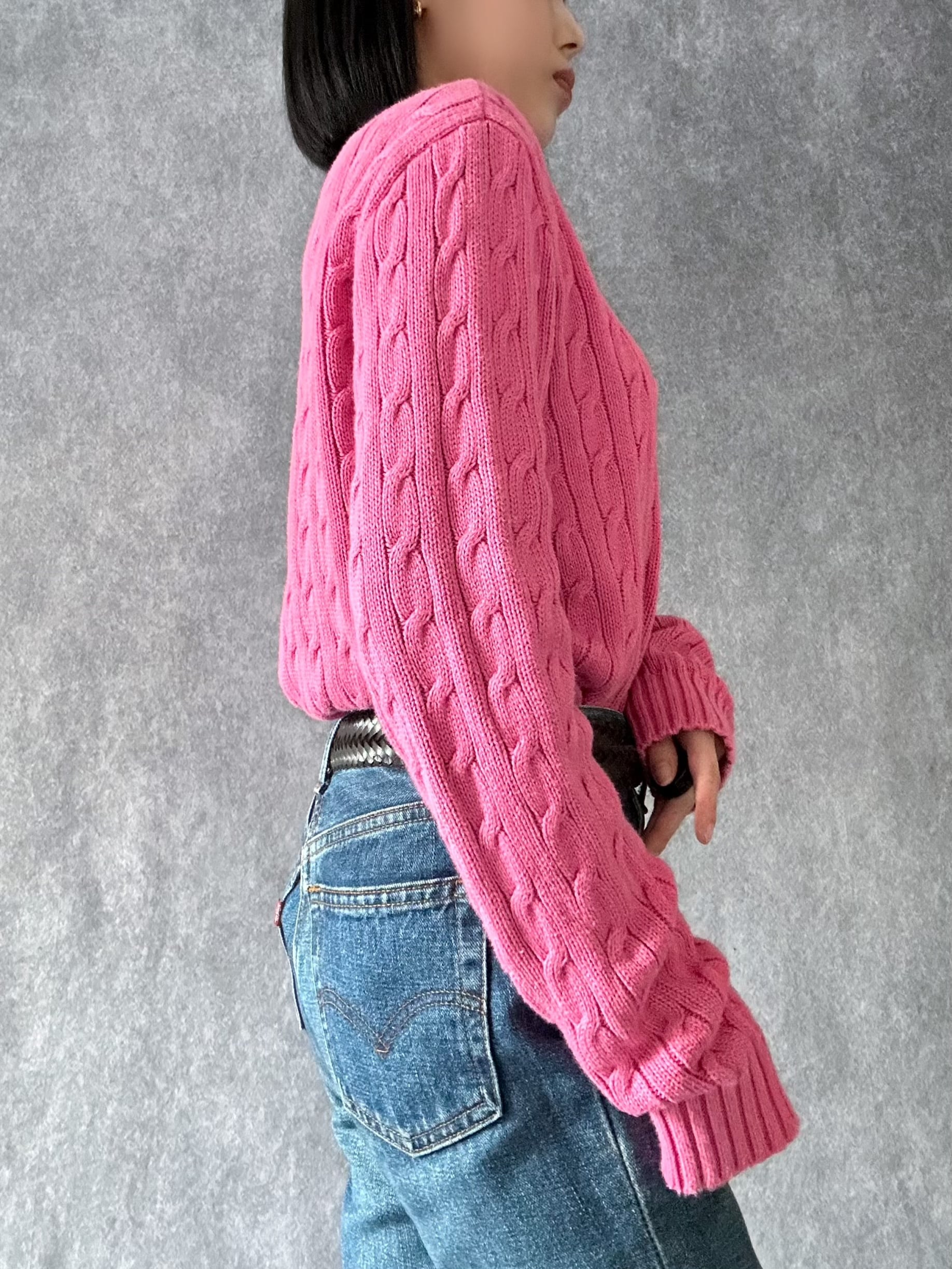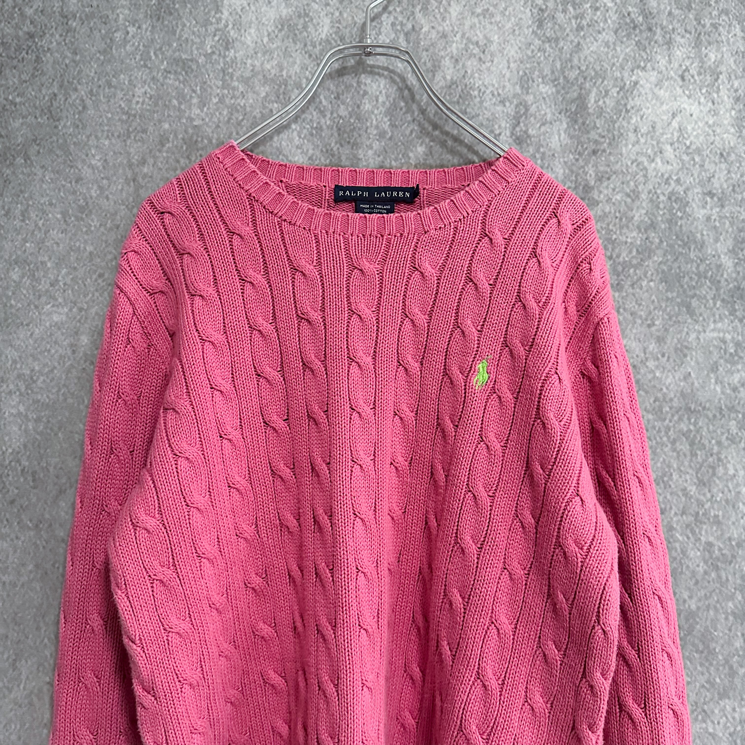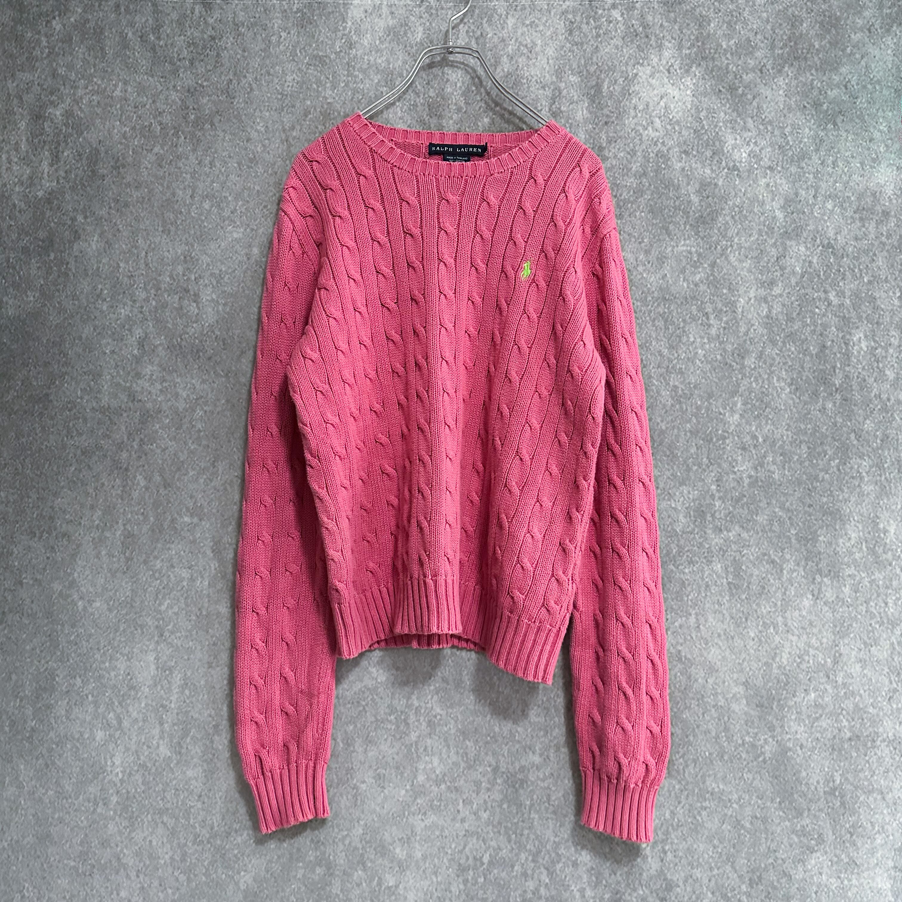 【ラルフローレン】ケーブルニット レディース ニット ラルフ ラルフローレン ピンク カラーニット クールネック カジュアル レディース古着 古着ニット 古着屋 ヴィンテージショップ