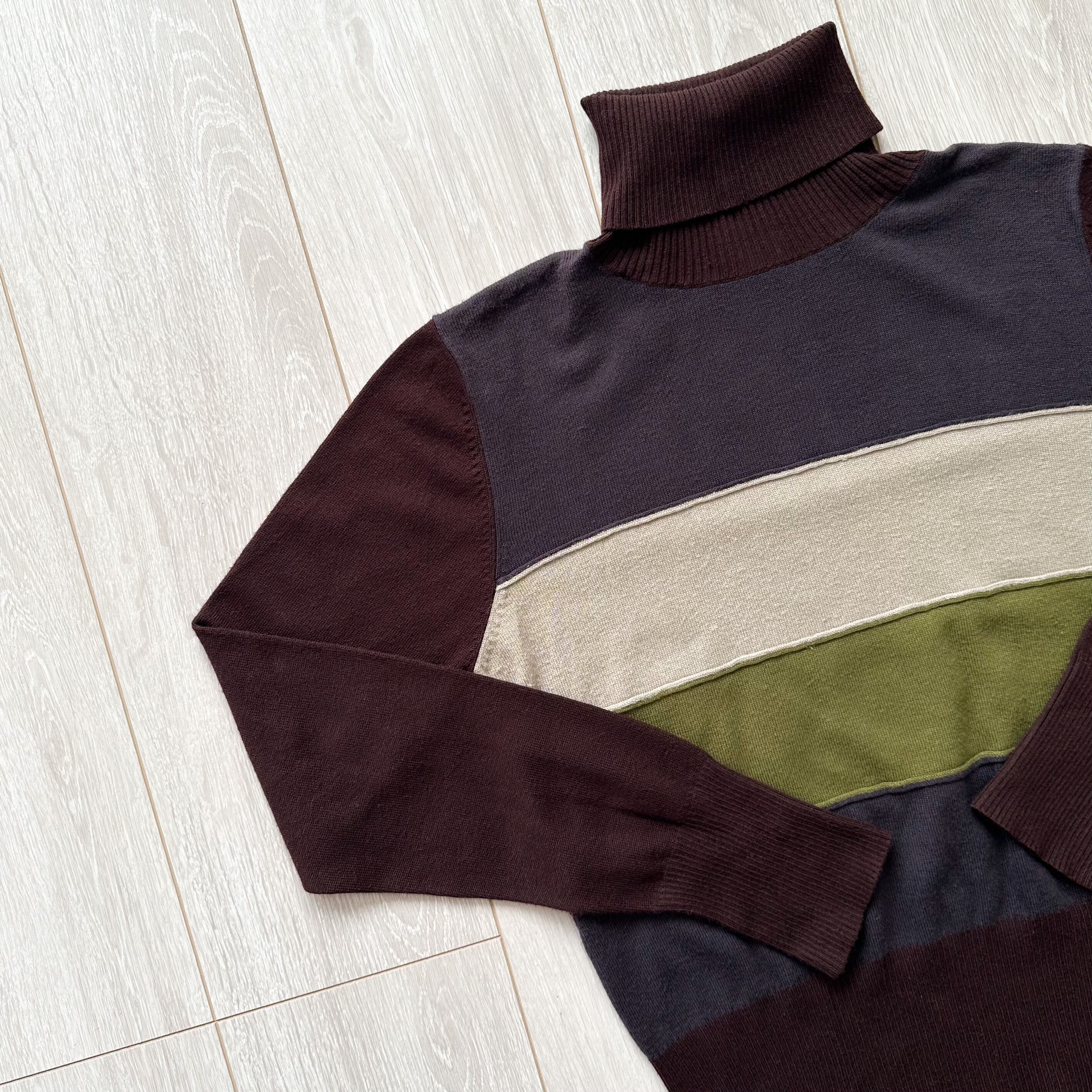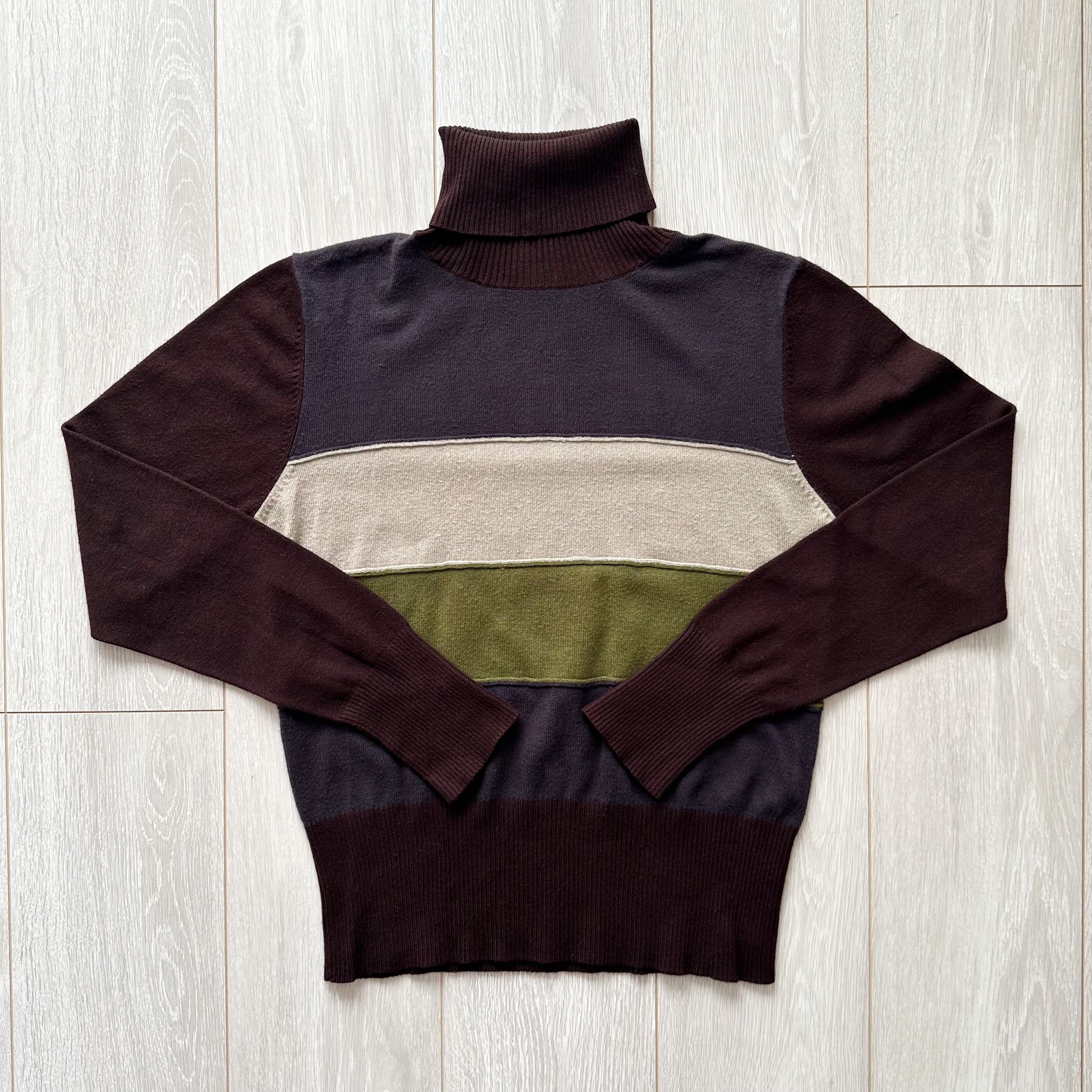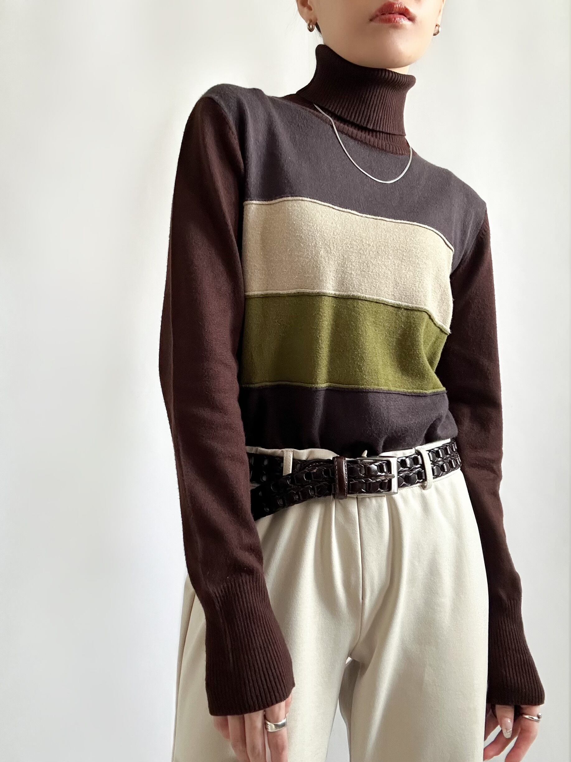 90s turtle border knit 90年代 タートルネックニット ボーダーニット ブラウン レディース古着 古着ニット 古着屋 ヴィンテージショップ