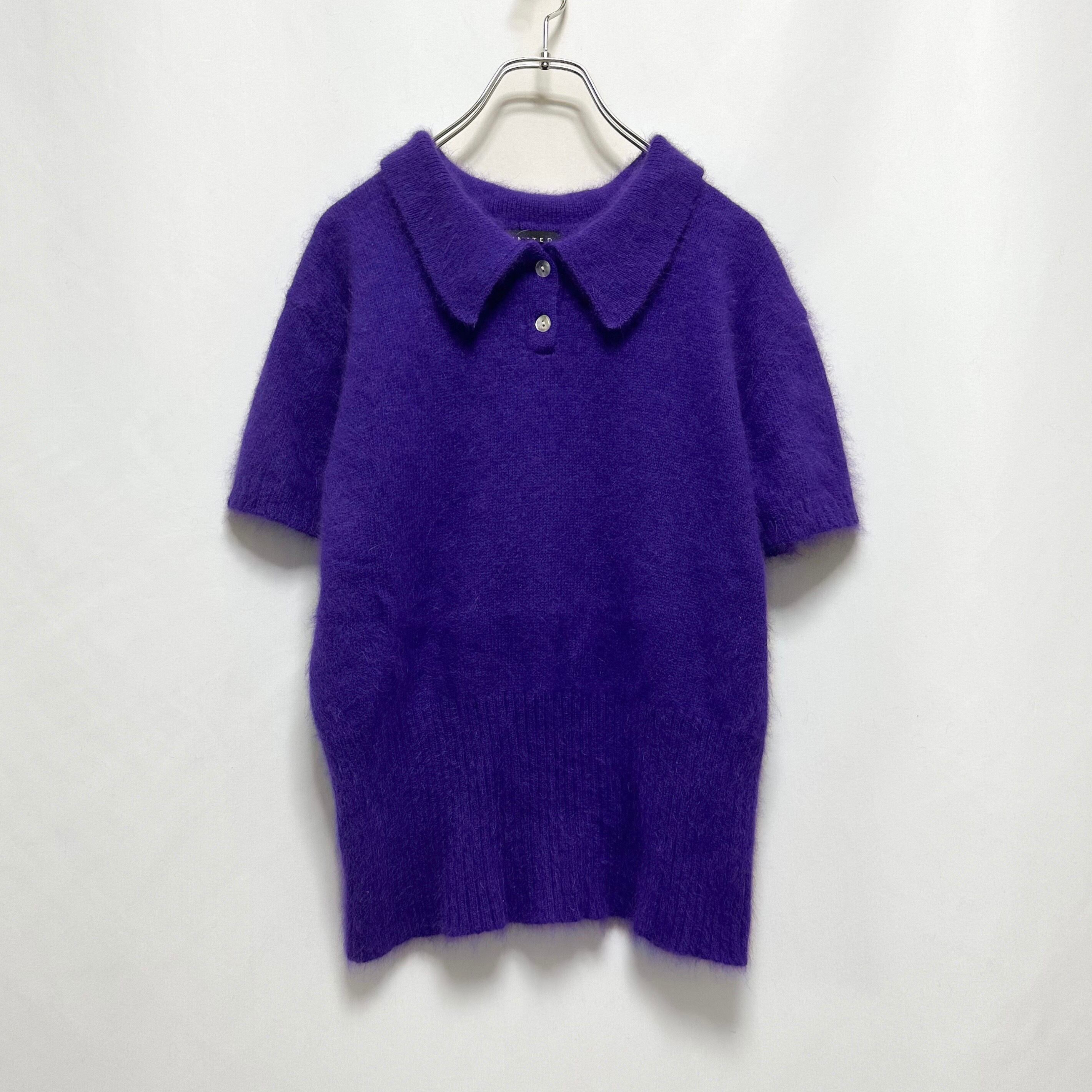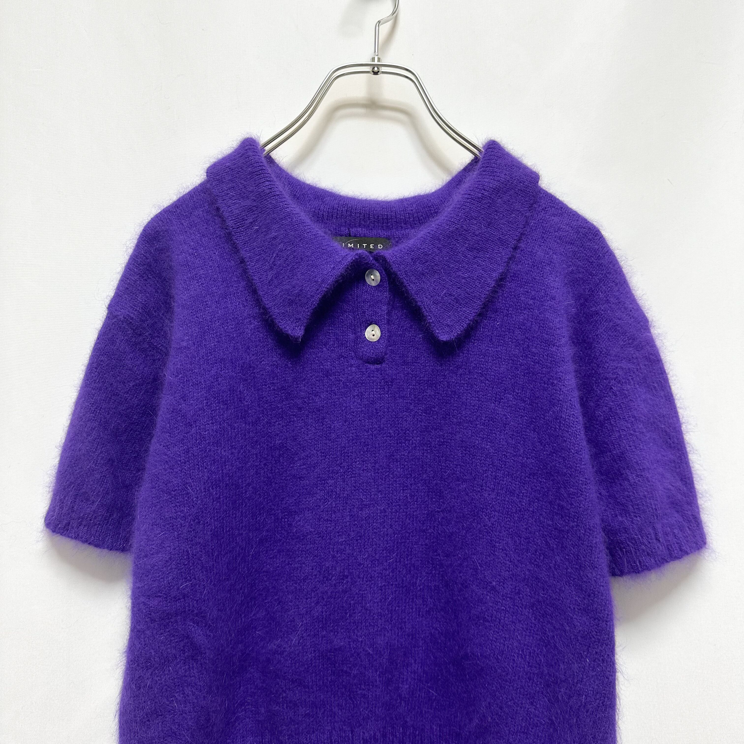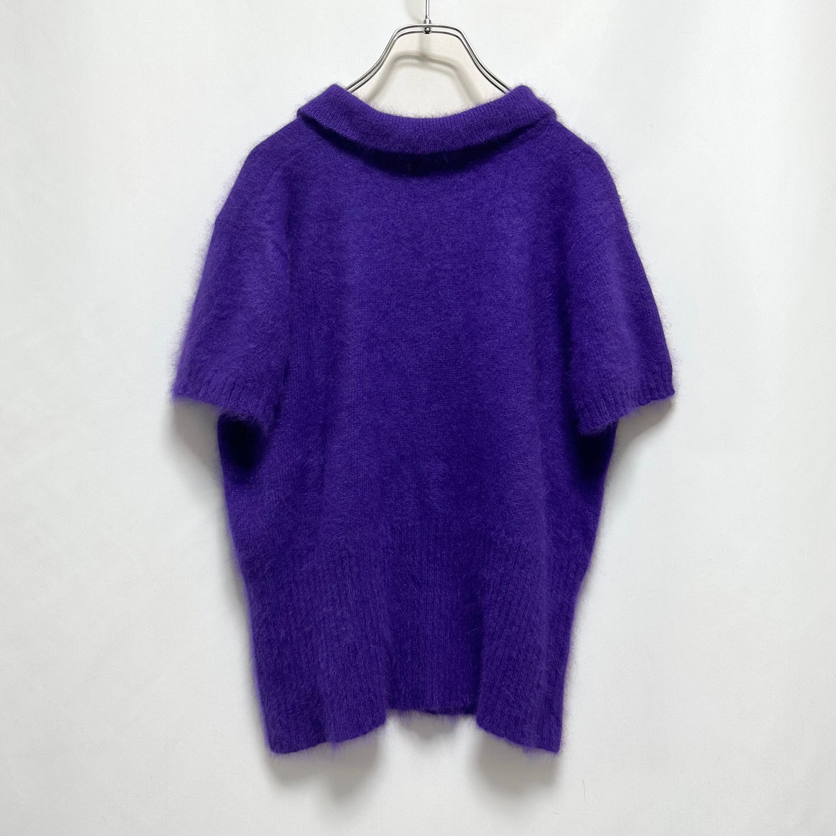 90s angora mixed polo knit ポロニット 半袖ニット アンゴラ混 パープル 古着ニット レディース古着 古着屋 ヴィンテージショップ