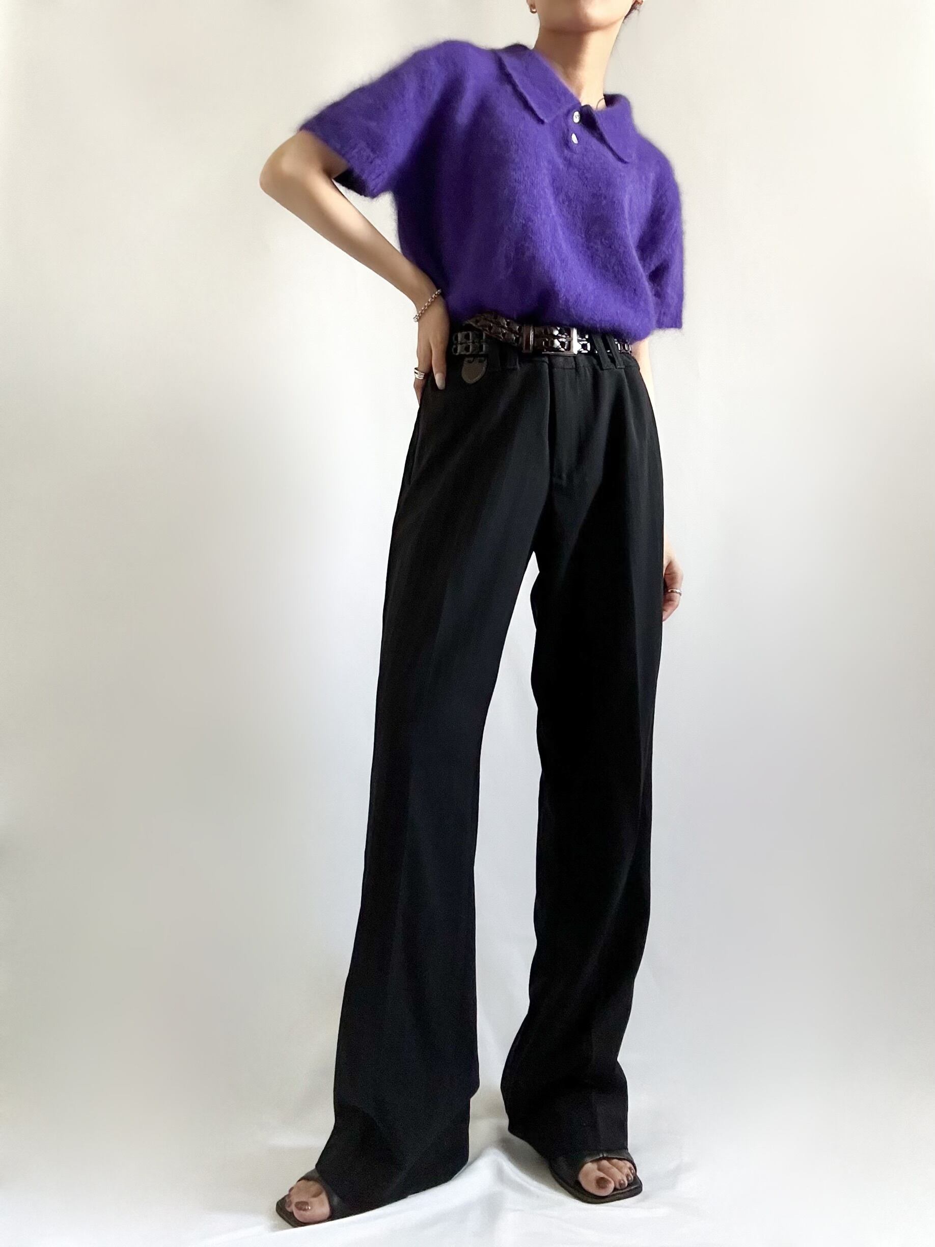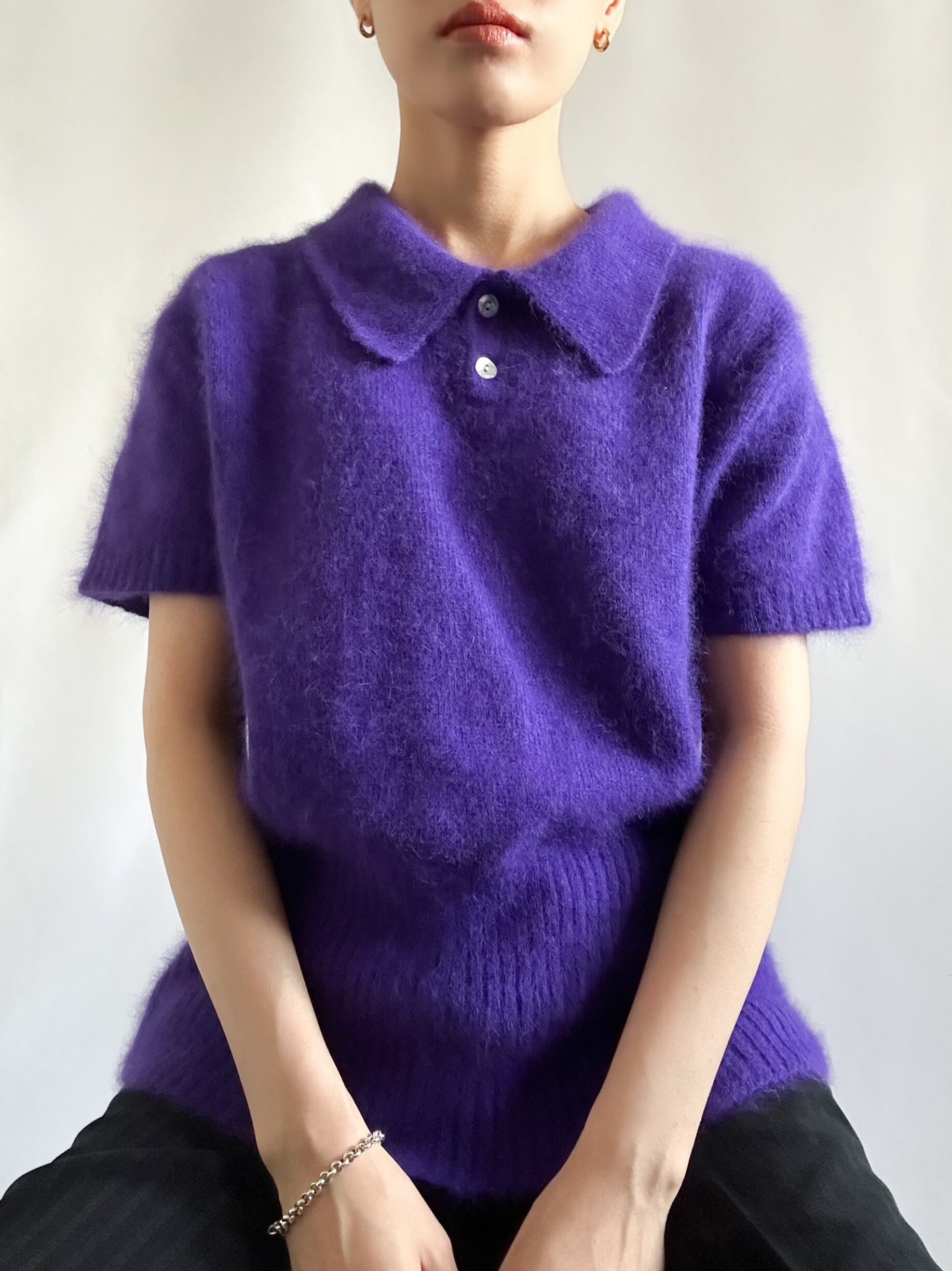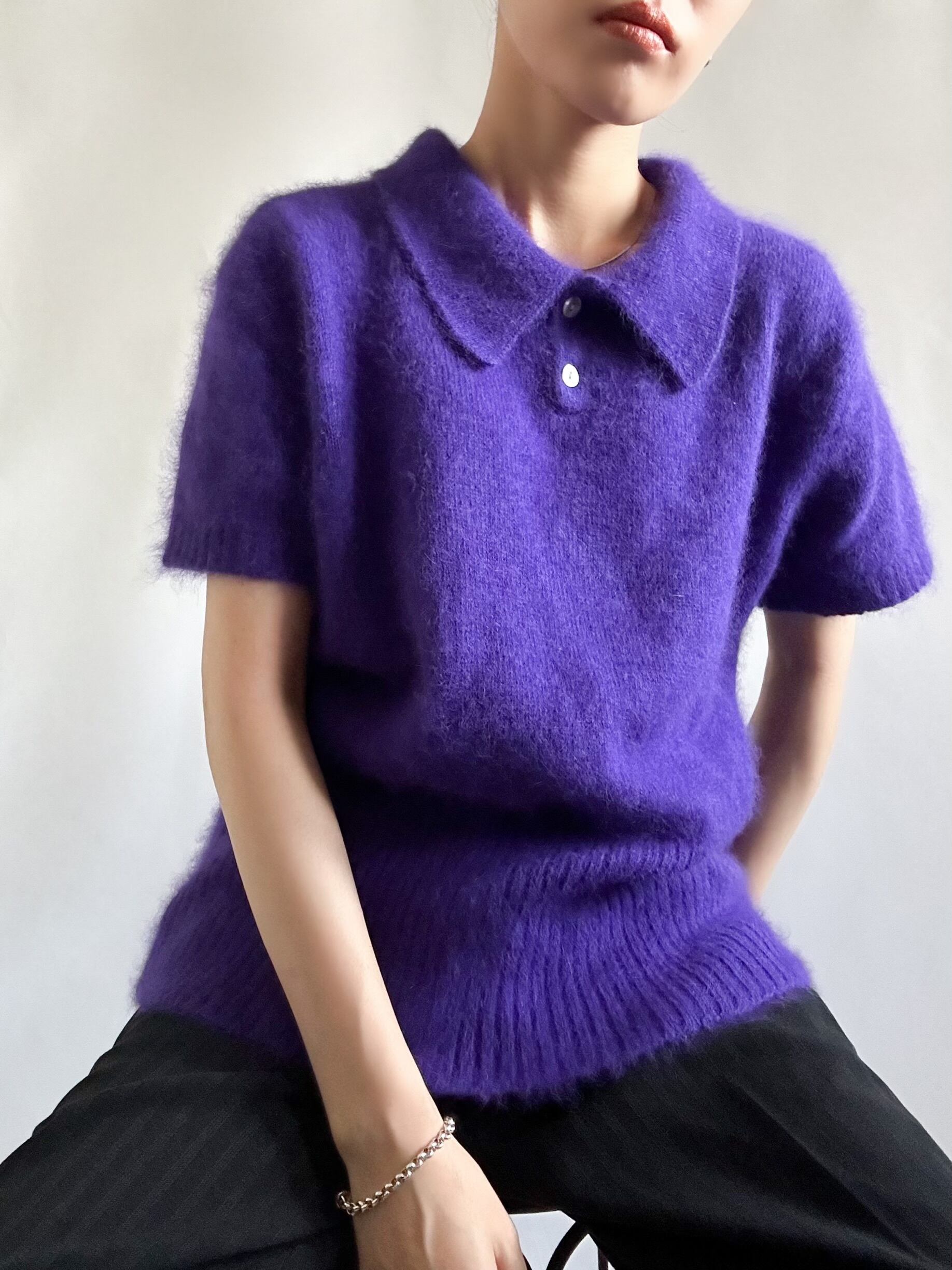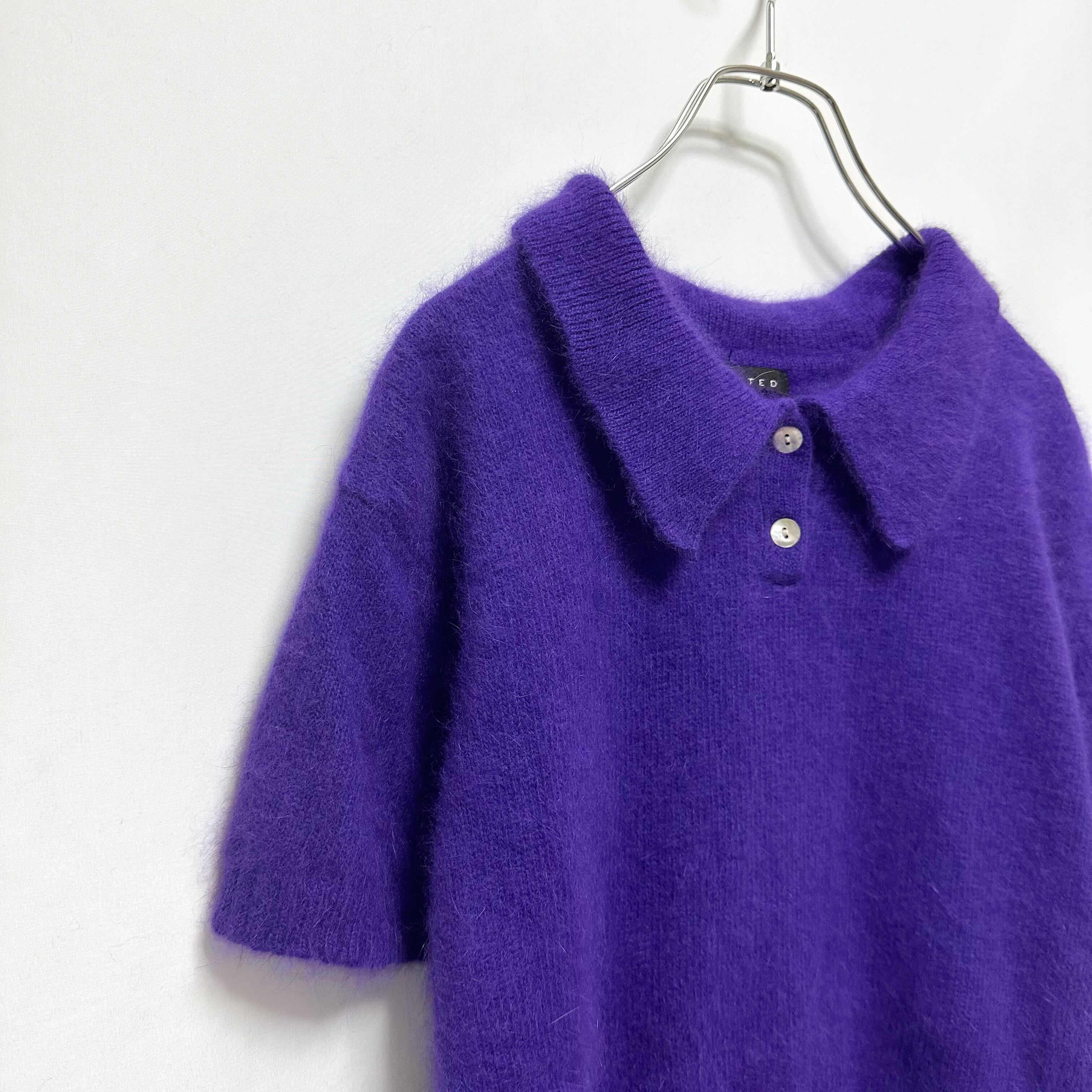 90s angora mixed polo knit ポロニット 半袖ニット アンゴラ混 パープル 古着ニット レディース古着 古着屋 ヴィンテージショップ