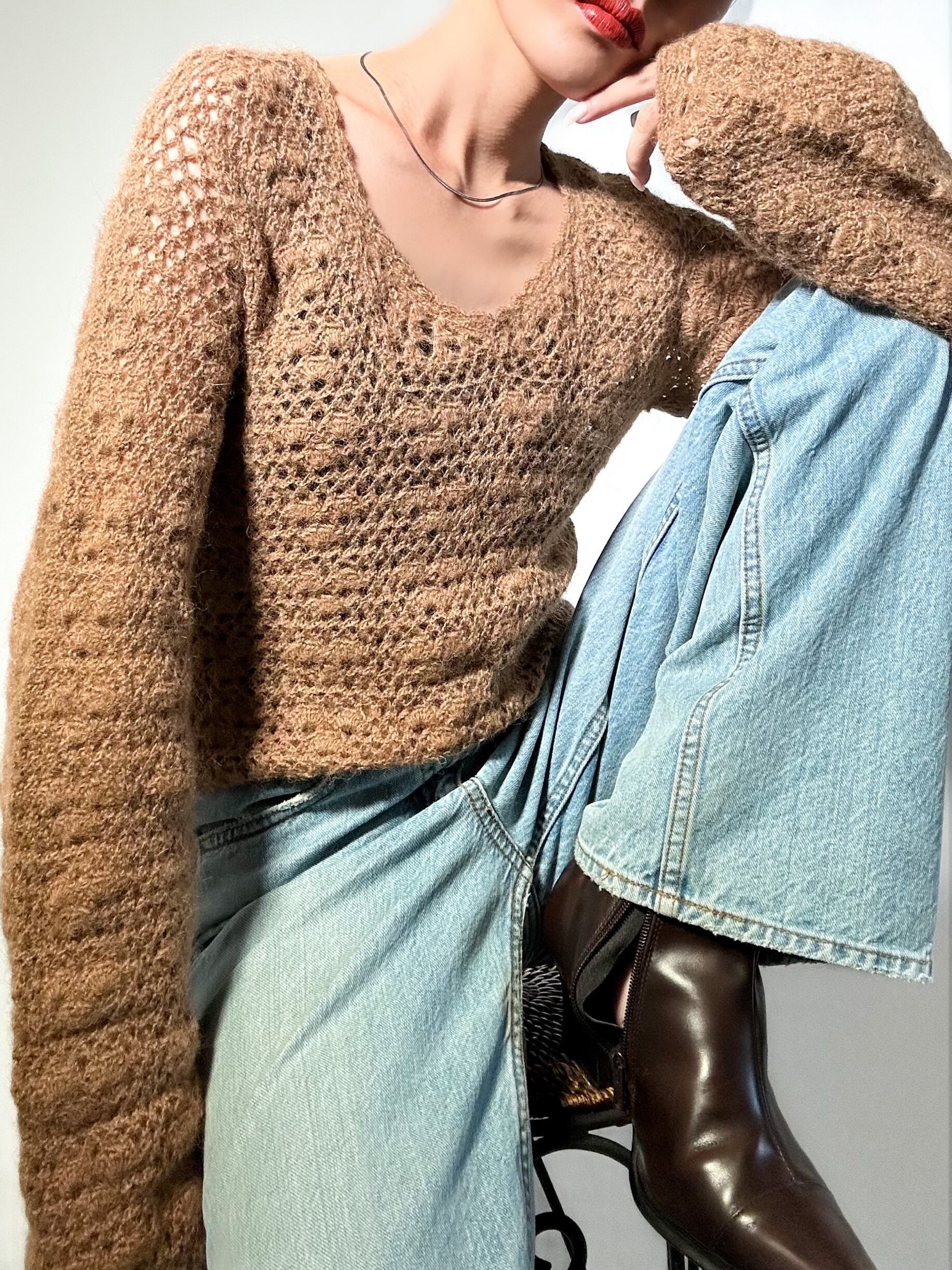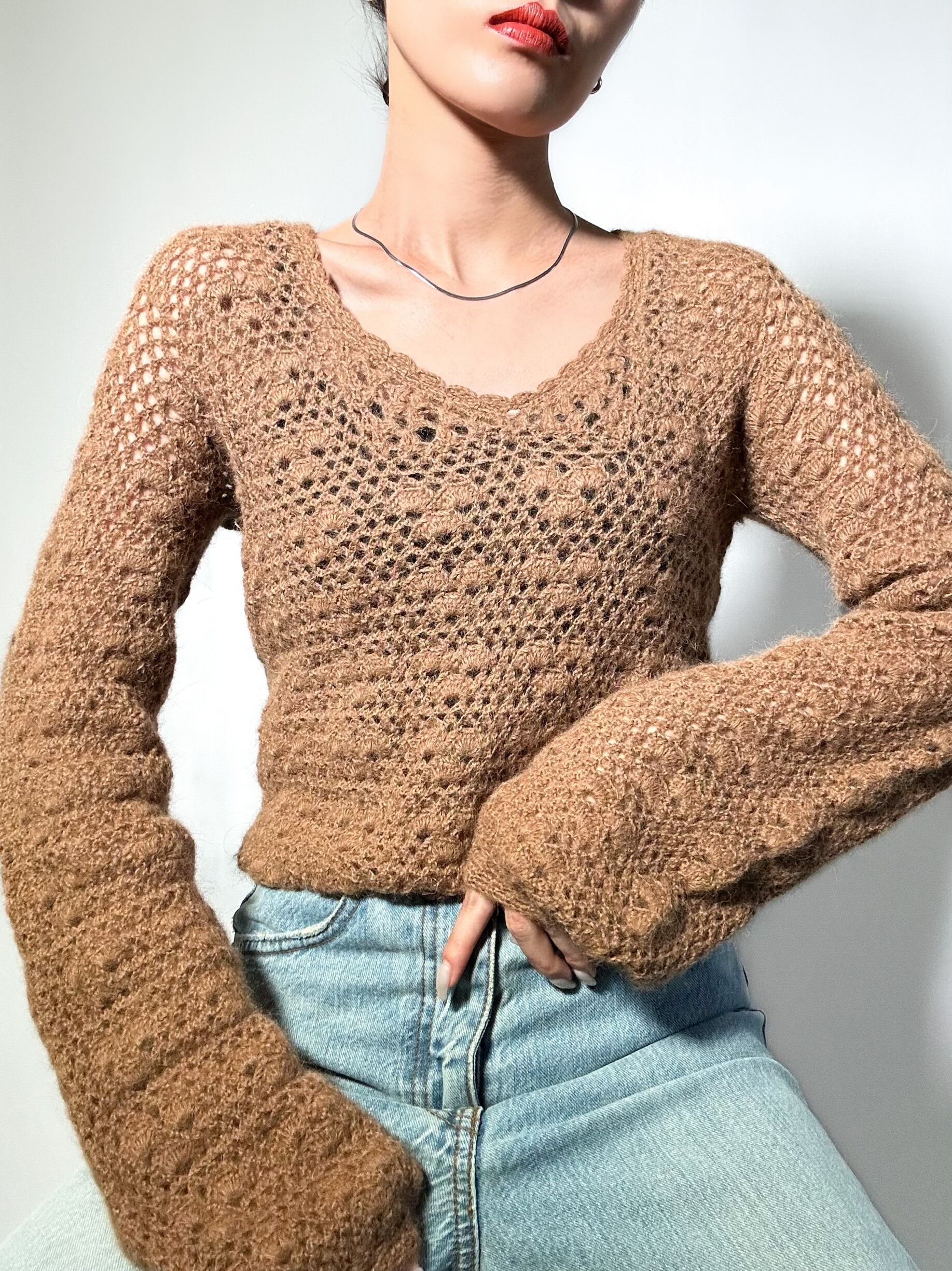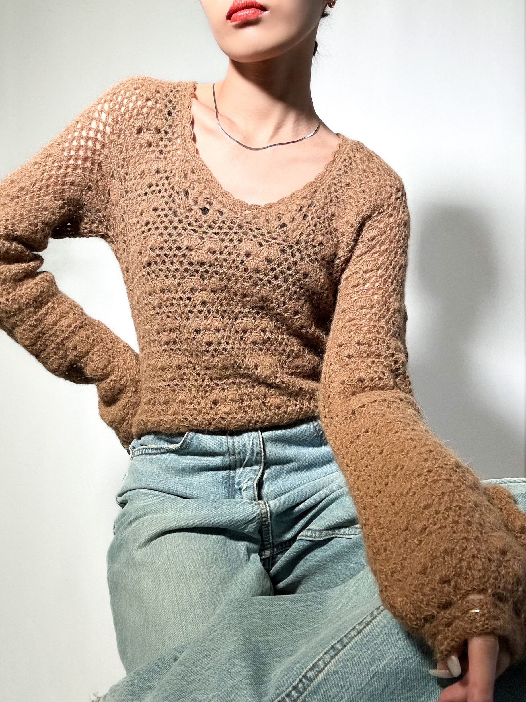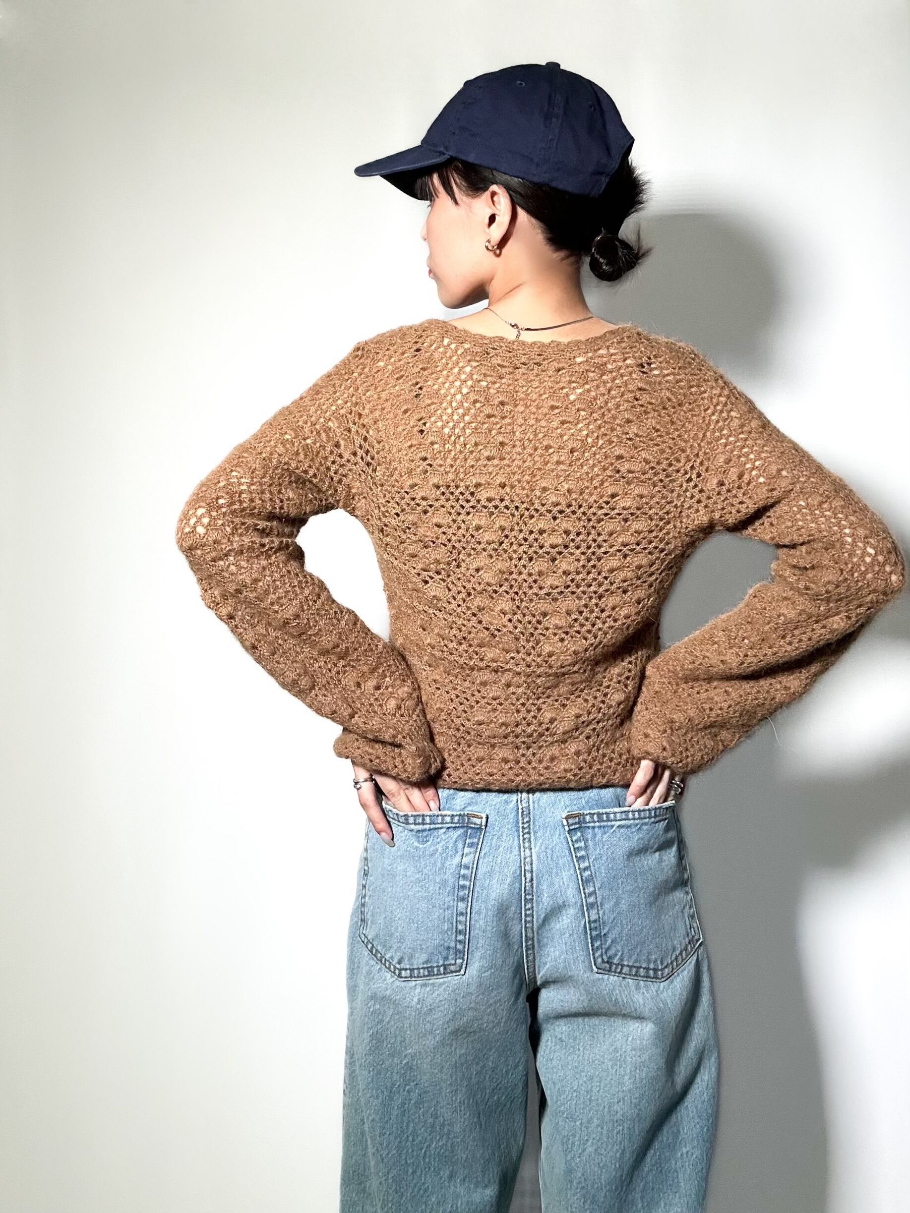 vintage handmade crochet knit ハンドメイド クロシェットニット ニット 長袖 レディースニット 古着ニット レディース古着 古着屋 ヴィンテージショップ