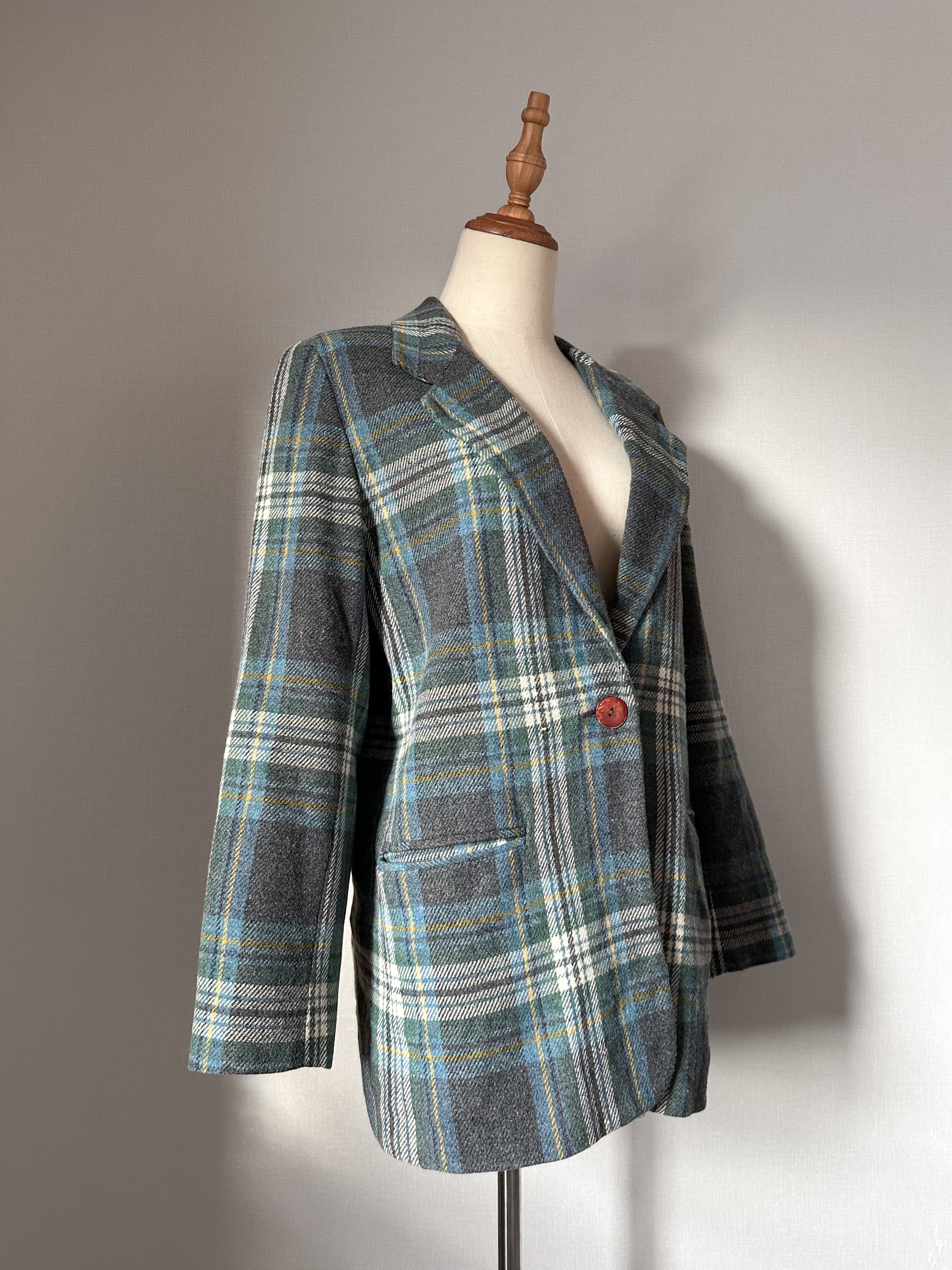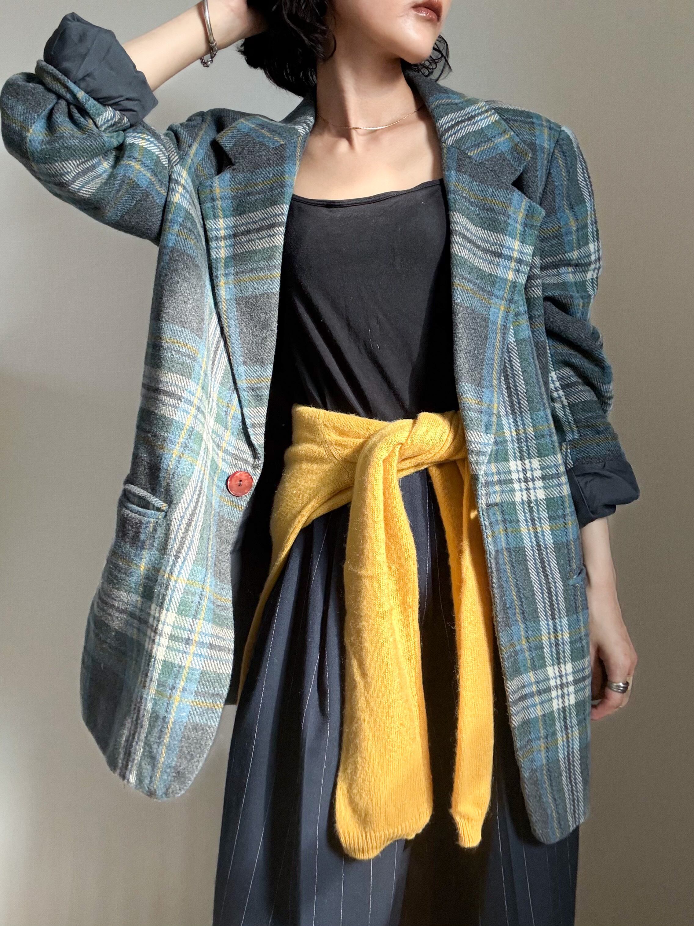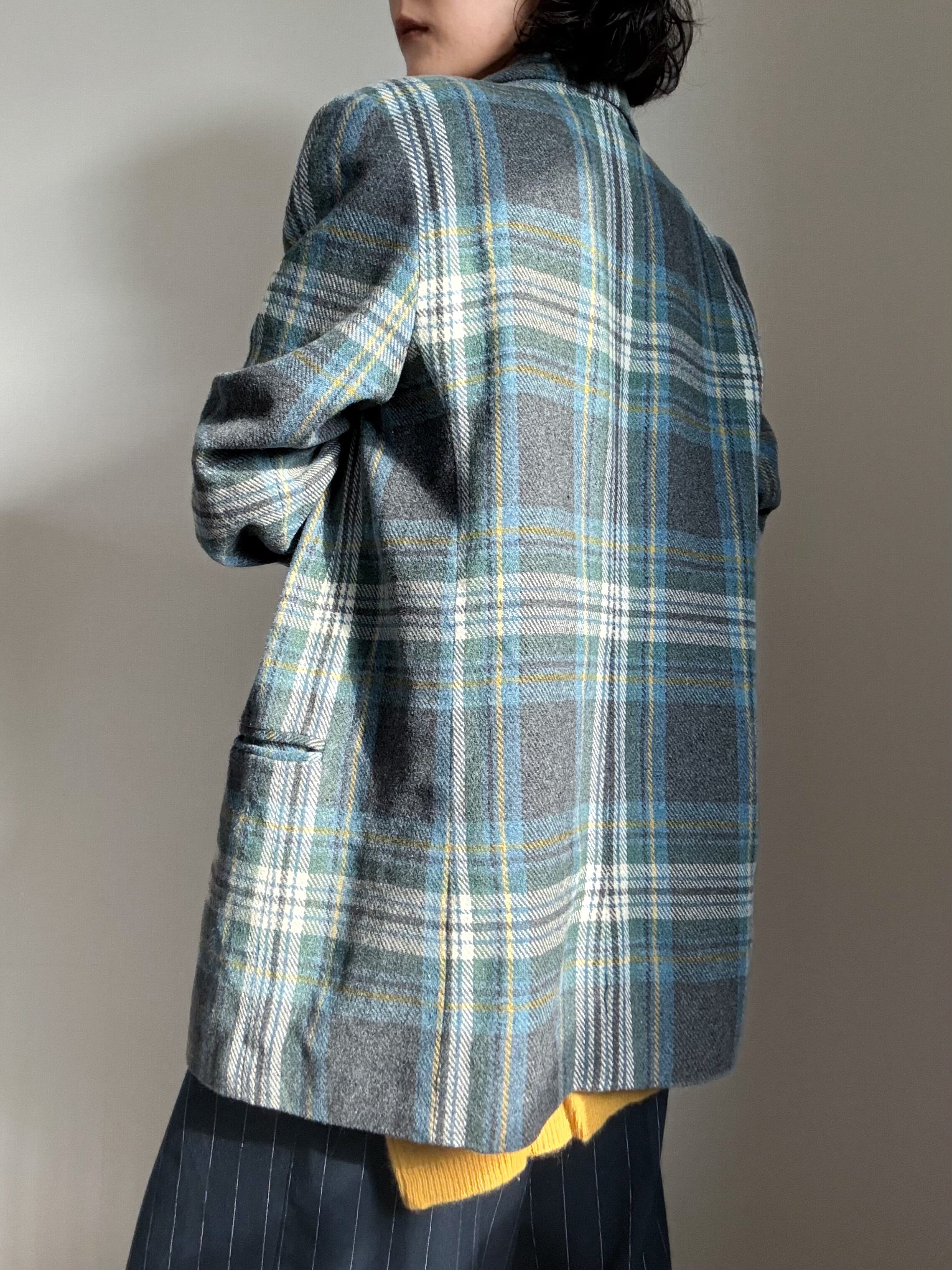 vintage check pattern tailored jacket テーラードジャケット チェック柄 チェック柄ジャケット 古着ジャケット レディース古着 古着屋 ヴィンテージショップ