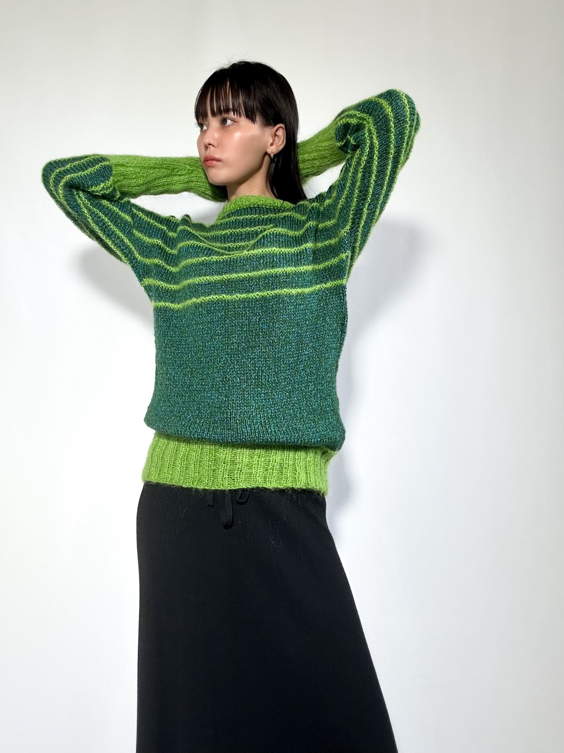 used glitter design knit 古着ニット デザインニット グリーン レディース古着 個性 古着屋 ヴィンテージショップ
