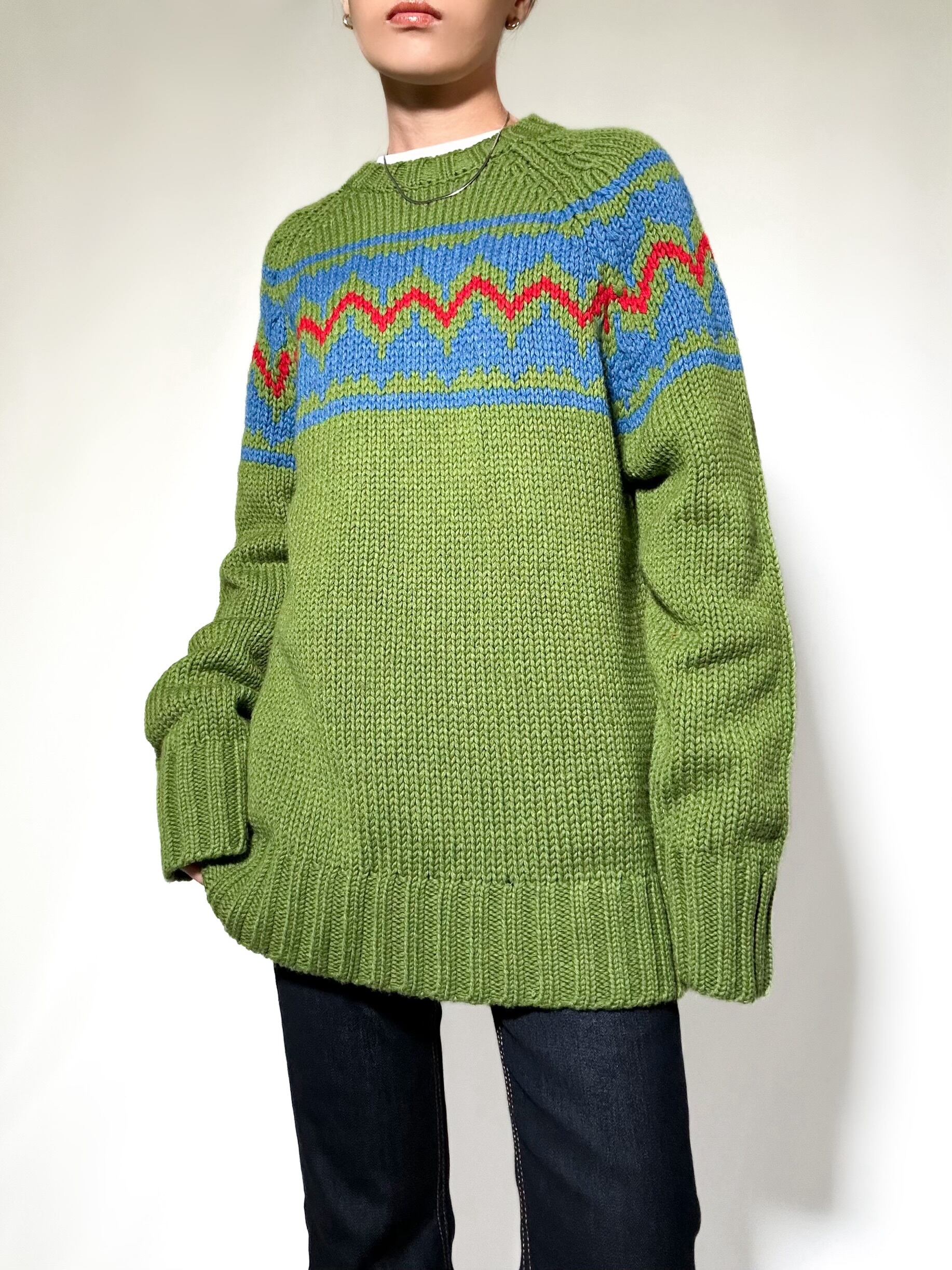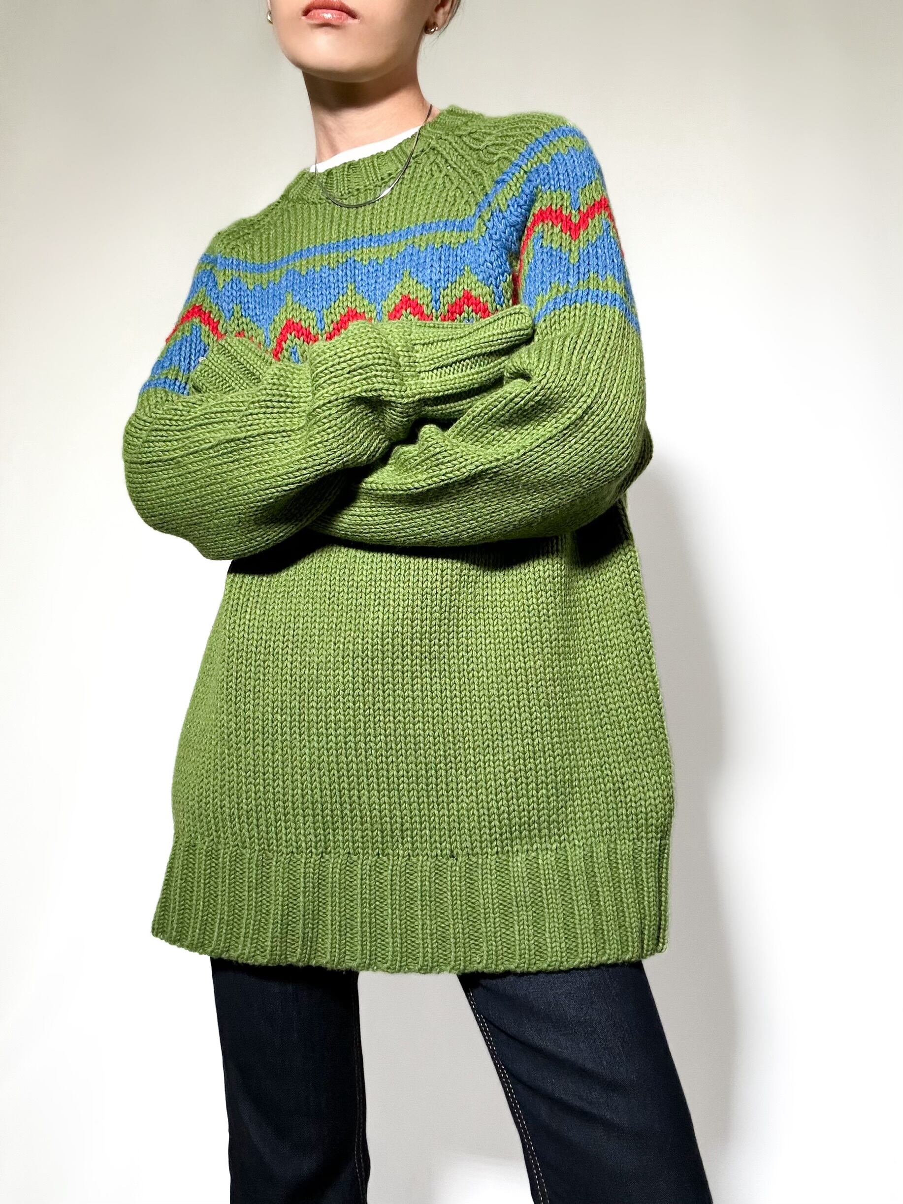 used design sweater 古着セーター 古着ニット デザインセーター デザインニット グリーン レディース古着 古着屋 ヴィンテージショプ