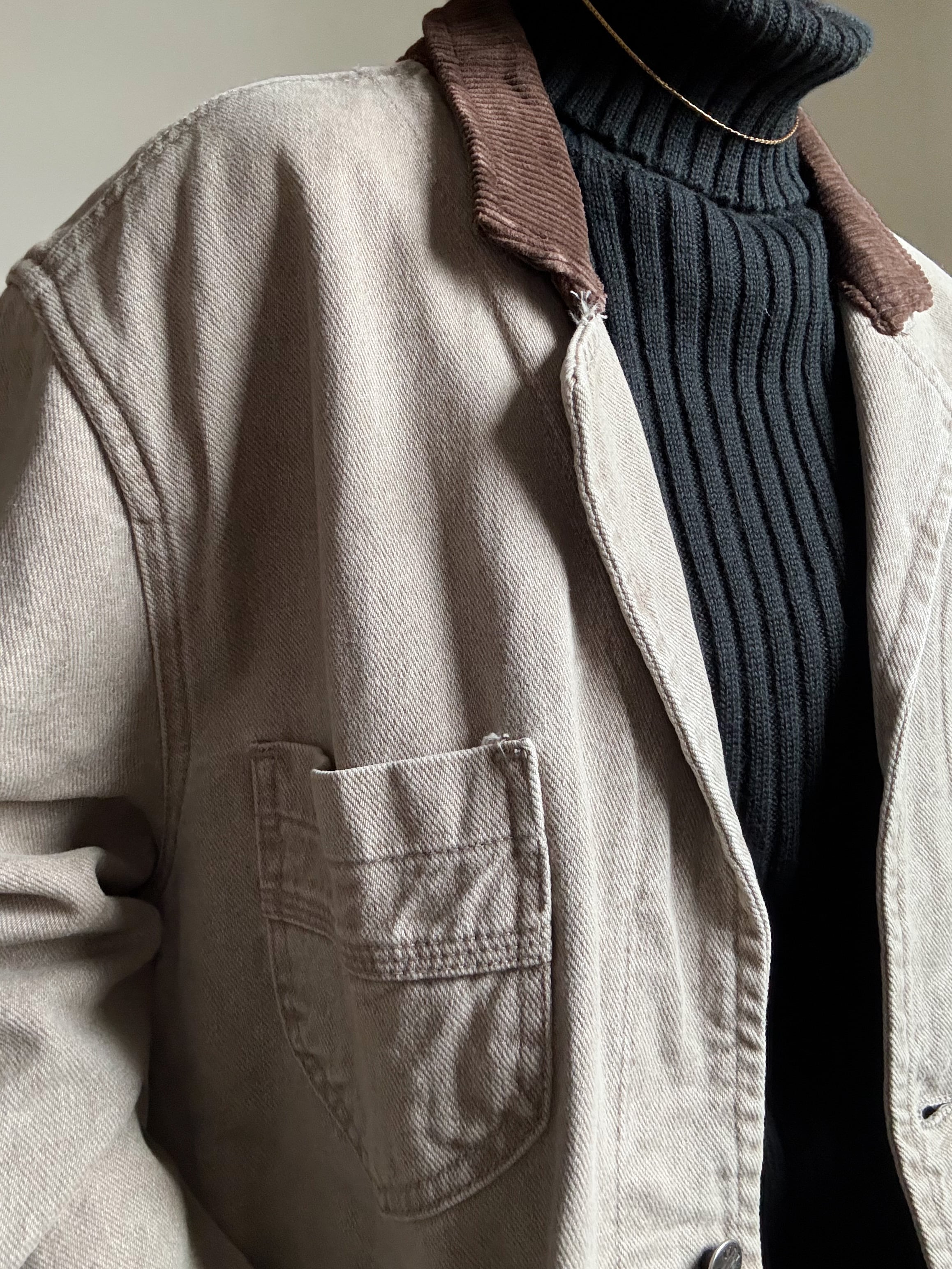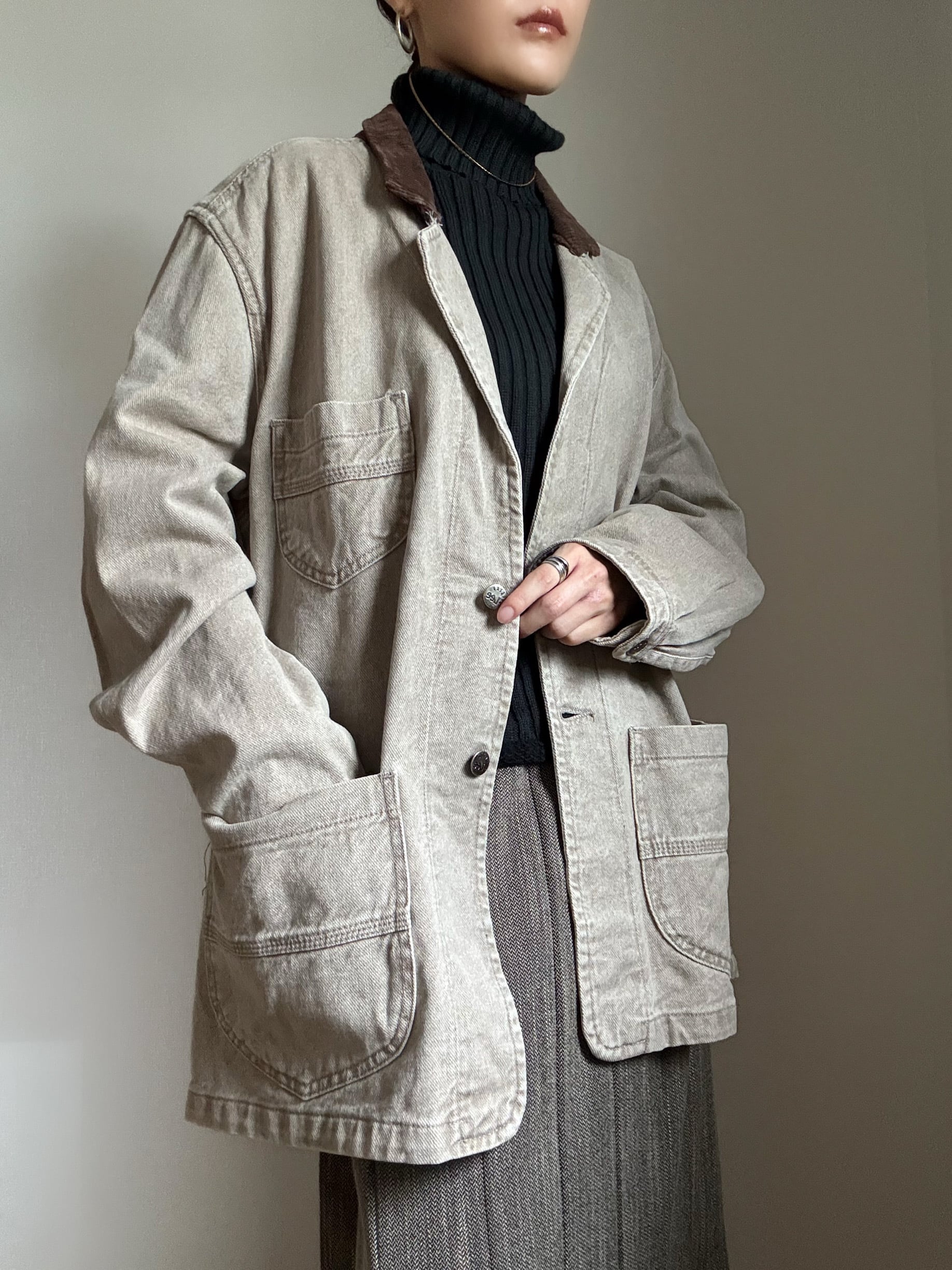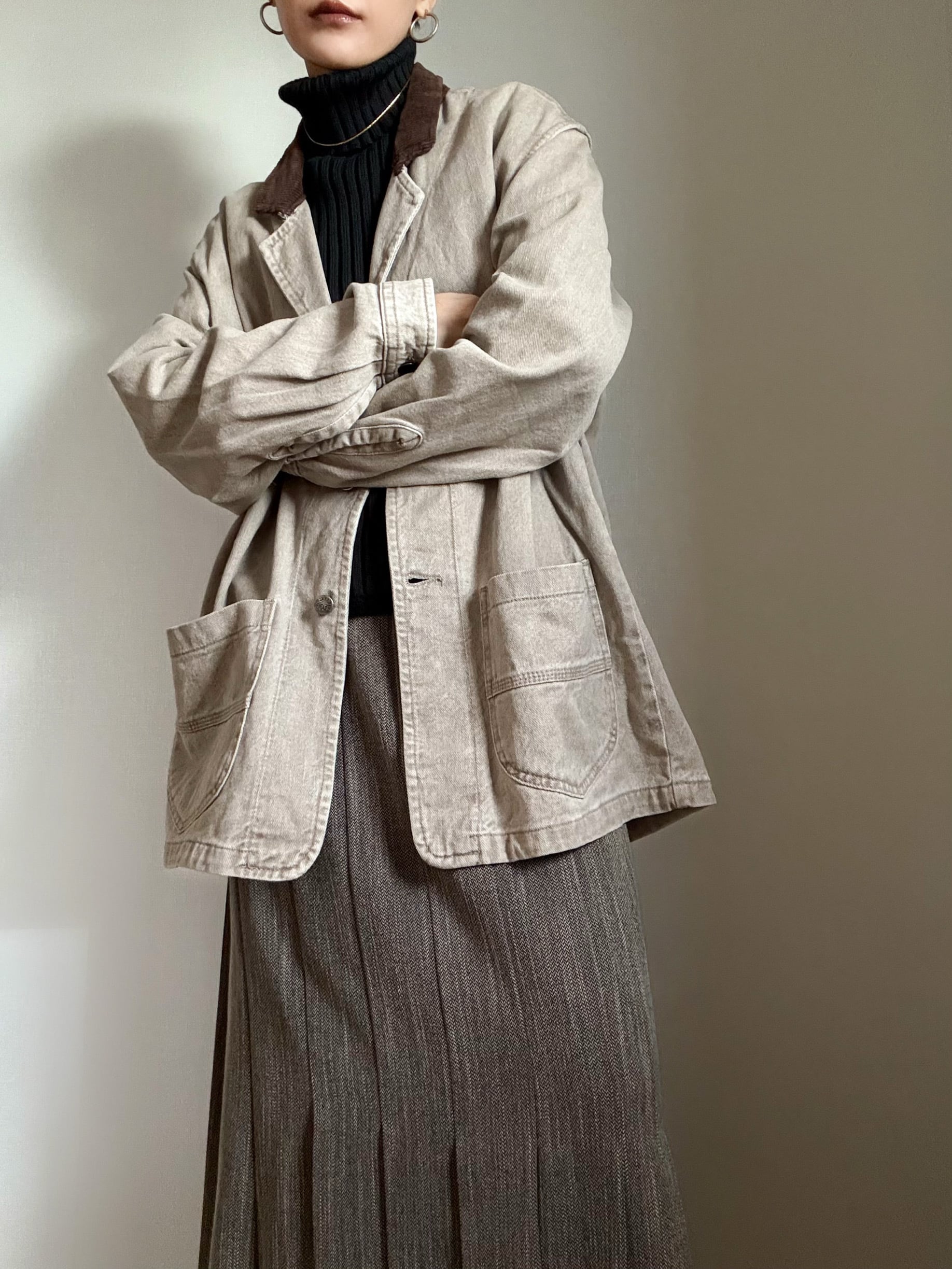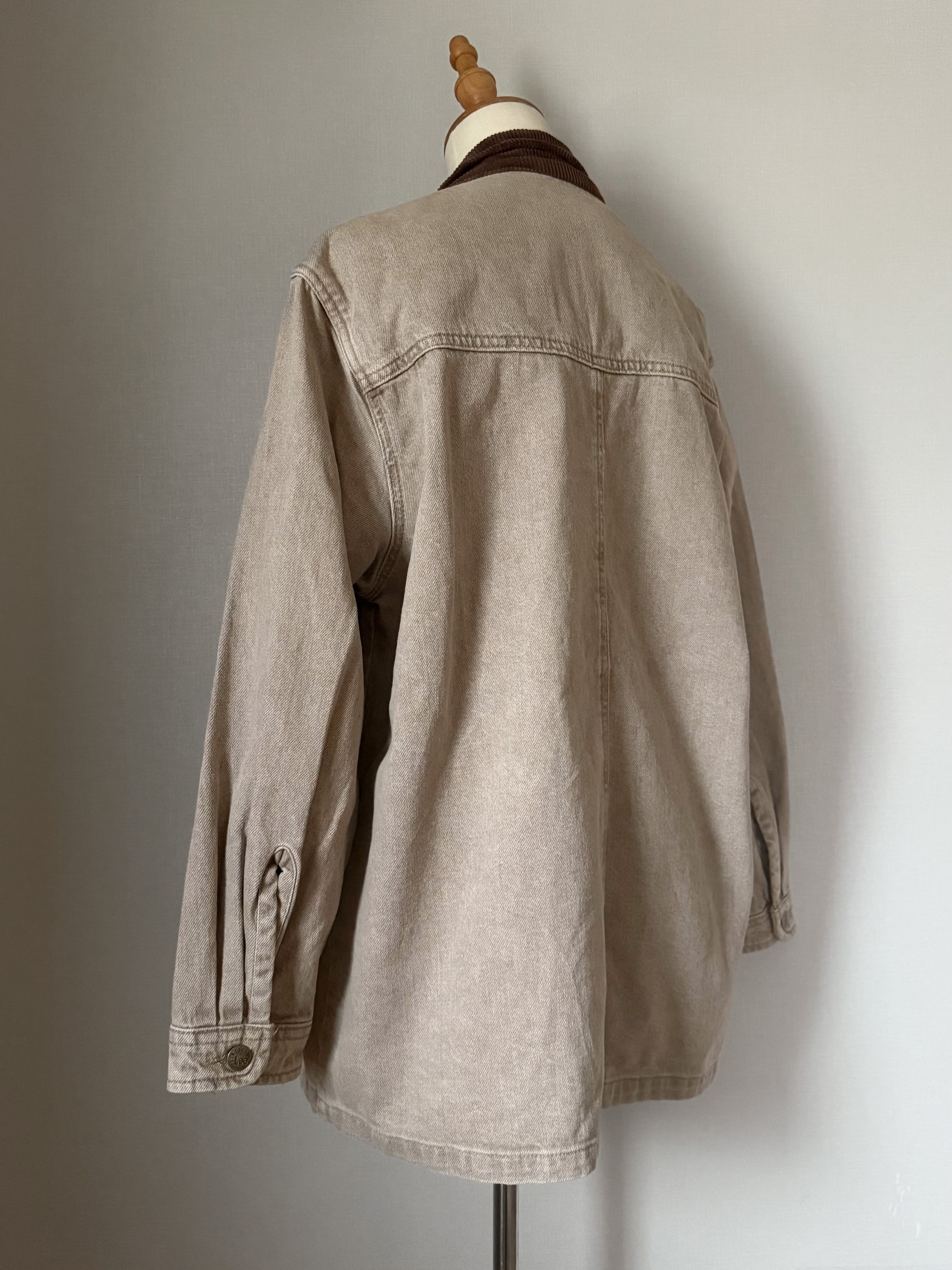 ブルーカラーのデニムジャケットはちょっと飽きたな〜という方にぜひお勧めしたいLeeのヴィンテージデニムジャケットです!!!優しいベージュカラーがとても可愛く、襟元に施されたコーデュロイがちょっとしたアクセントに。サイズ感も少し大きめなので、ざっくりと羽織れて、メンズでも着用して頂けます!