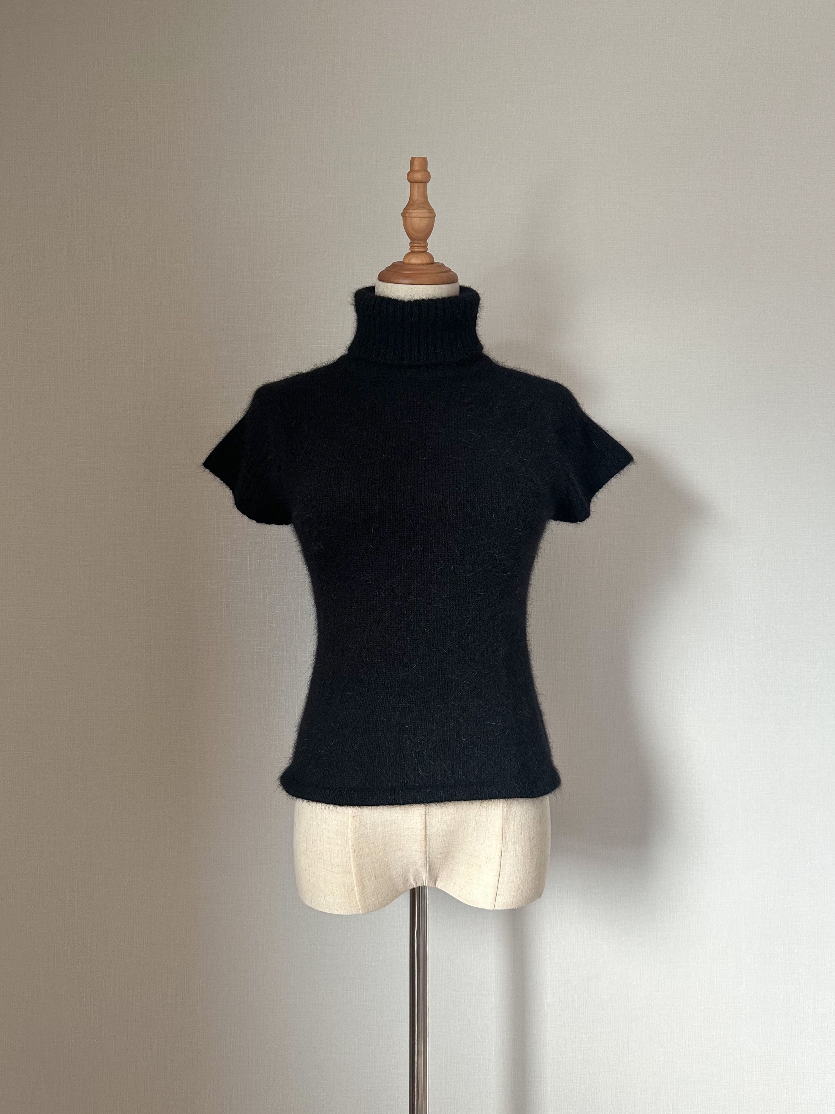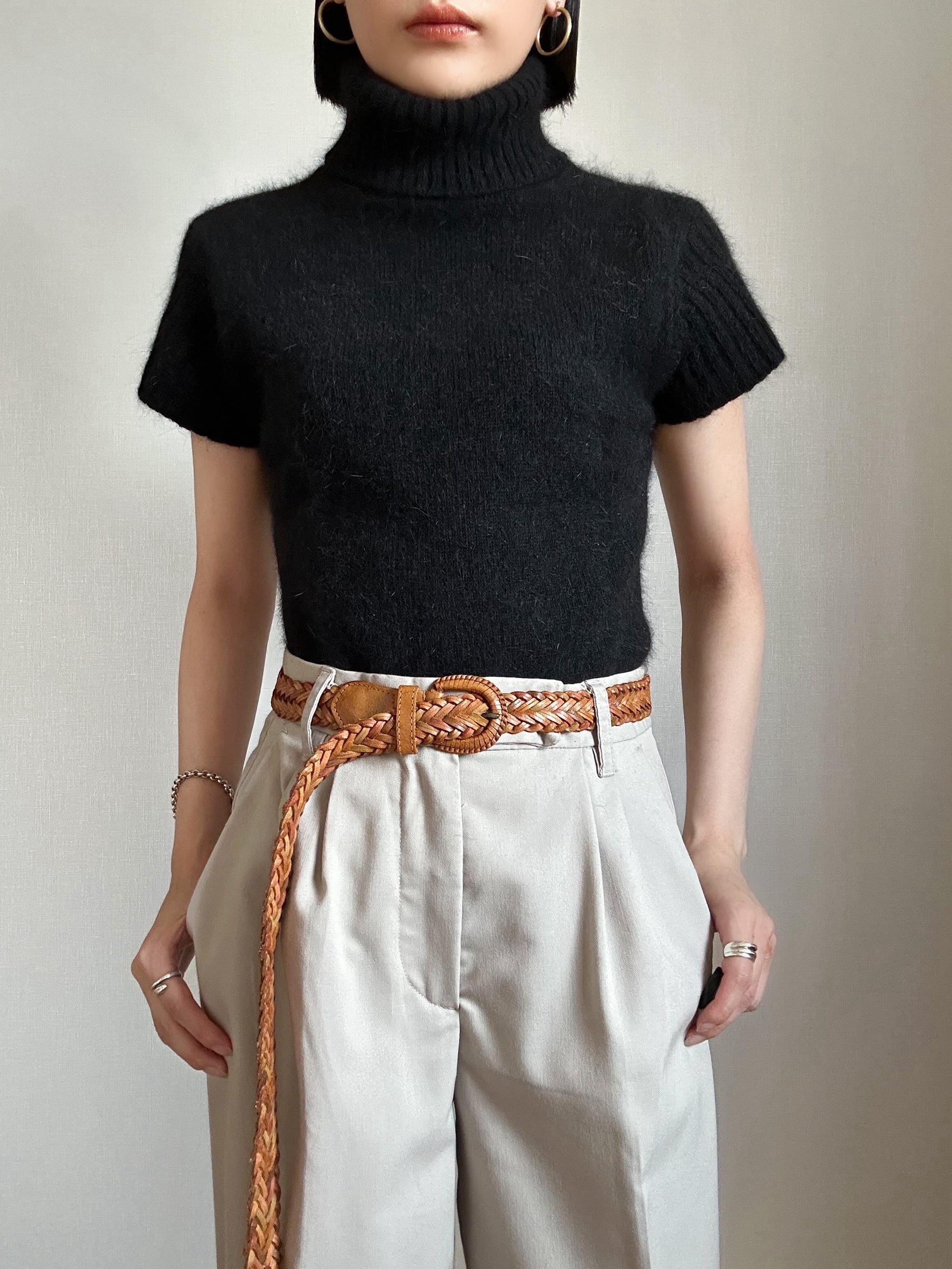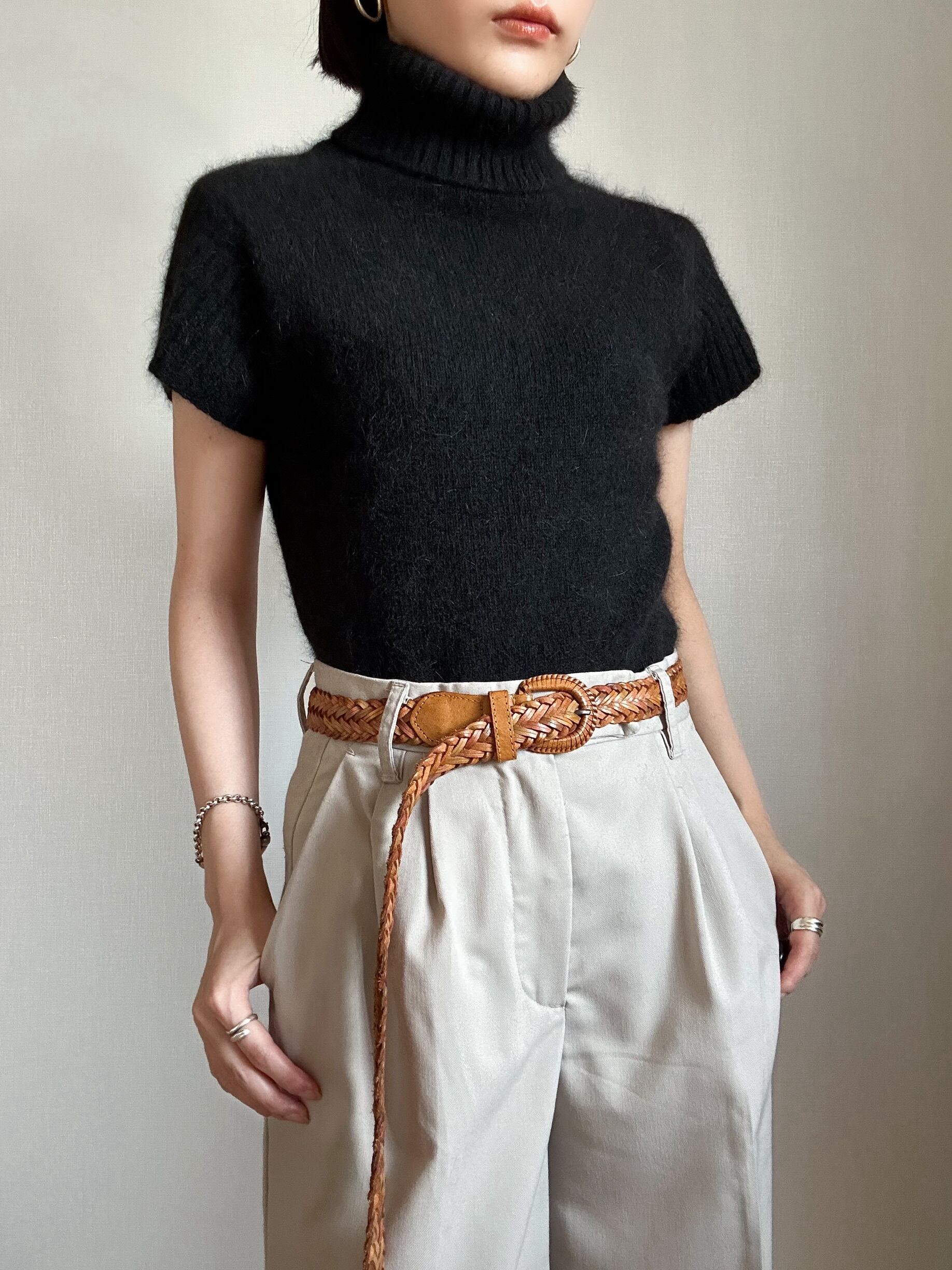 【STOCK SALE】used half sleeve knit ハーフスリーブニット 半袖ニット タートルネック ブラック レディース古着 古着屋 ヴィンテージショップ
