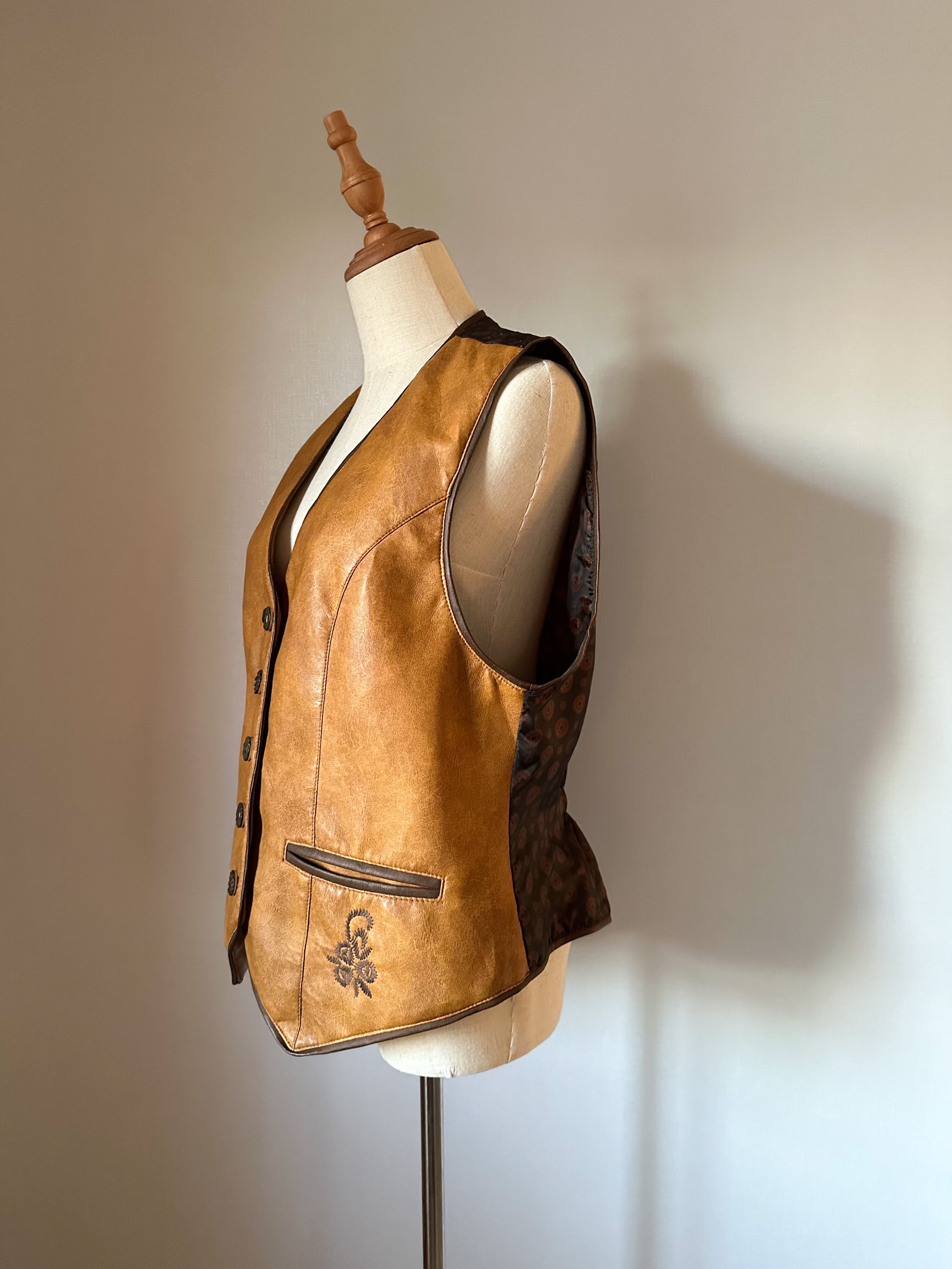90s fake leather vest 90年代 フェイクレザーベスト レザーベスト 古着ベスト キャメル ヨーロッパ古着 レディース古着 古着屋 ヴィンテージショップ | unfini vintageshop