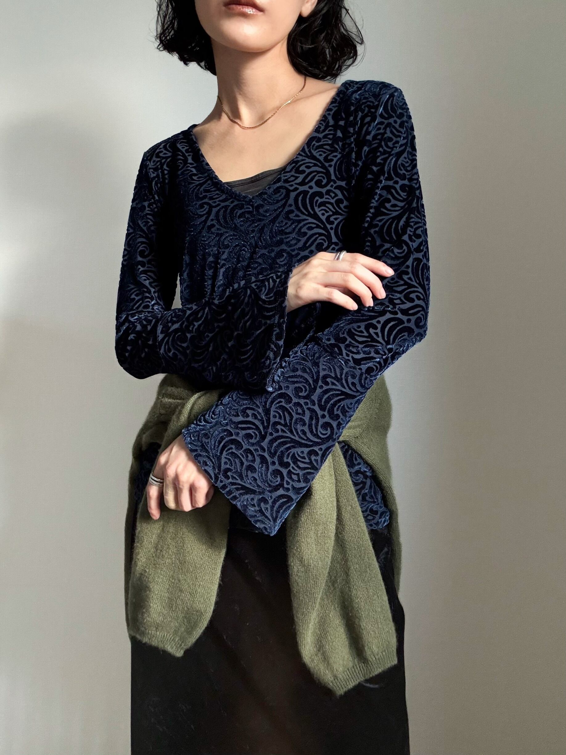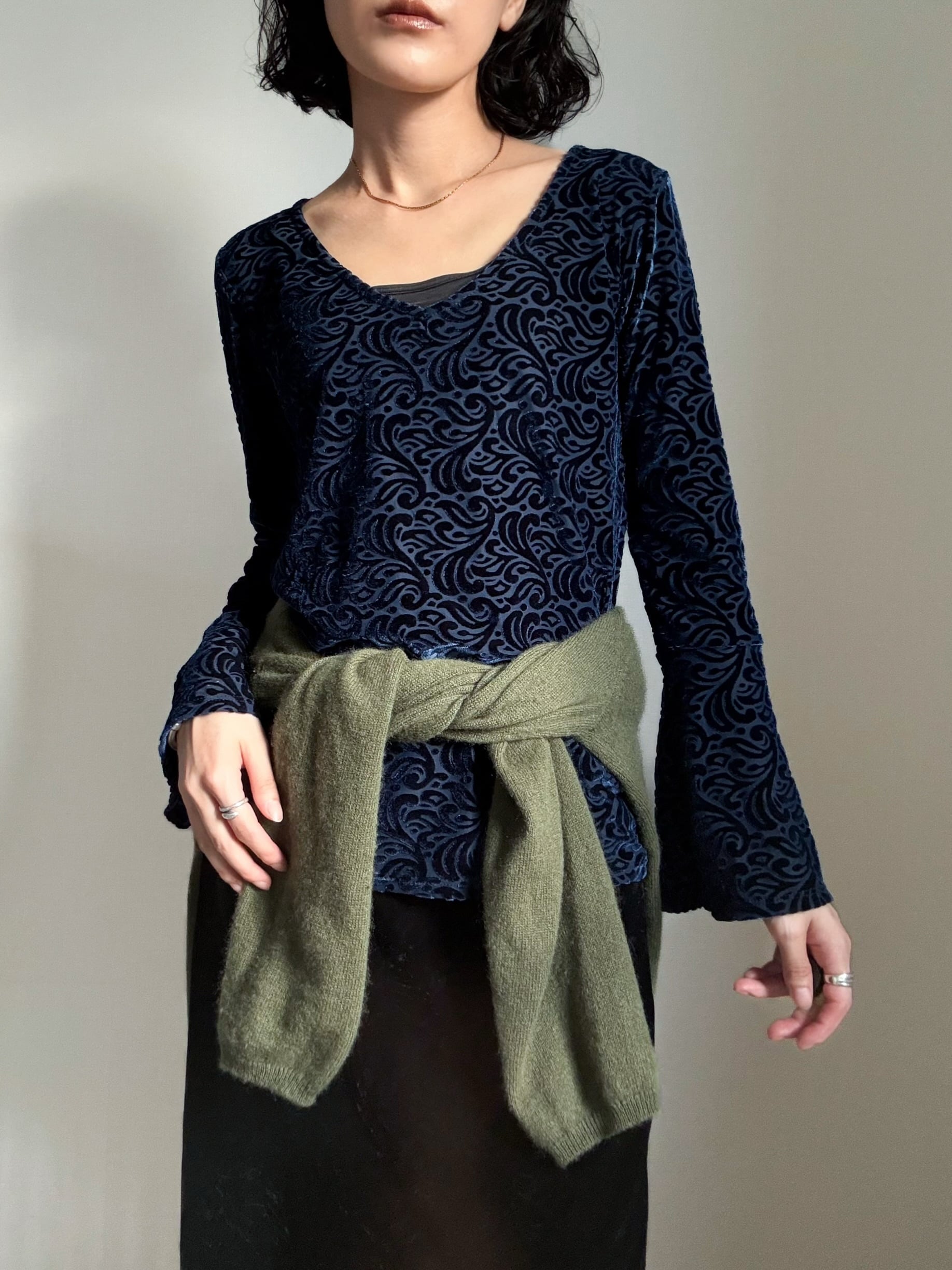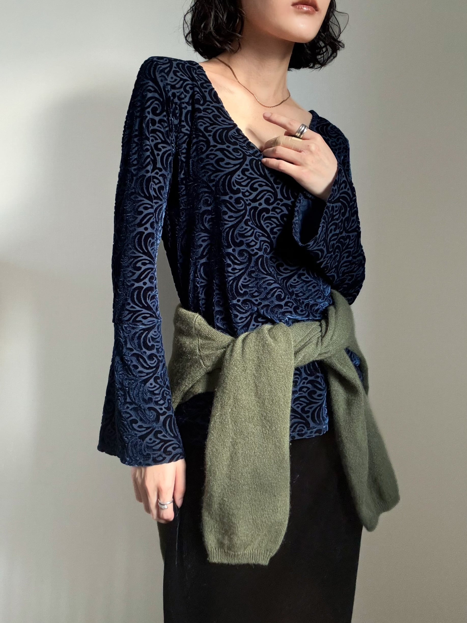 used paisley flare sleeve tops フレアスリーブトップス ペイズリー柄 ベロアトップス 古着トップス レディース古着 古着屋 ヴィンテージショップ